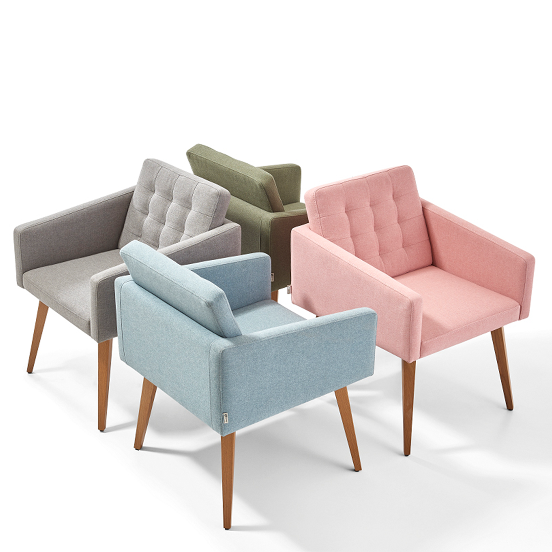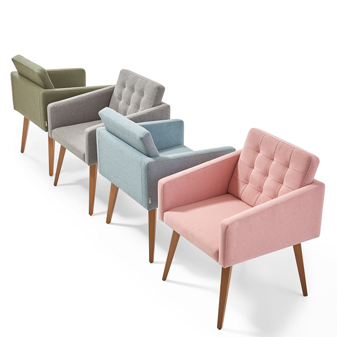 With its elegant modern look, sitting on wooden tapered legs with a tufted back on angled armrests, you will definitely fall in love with Ada Armchair.