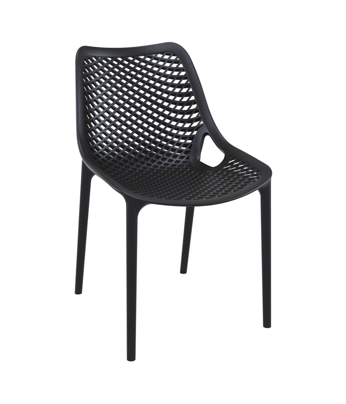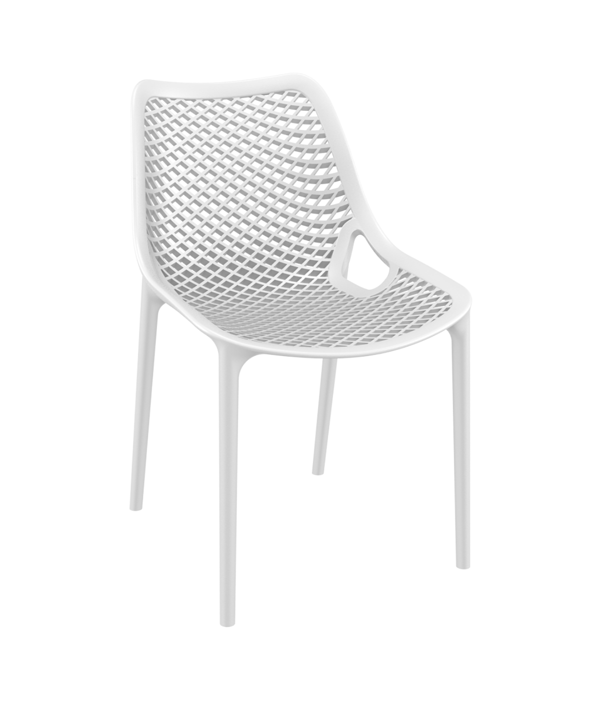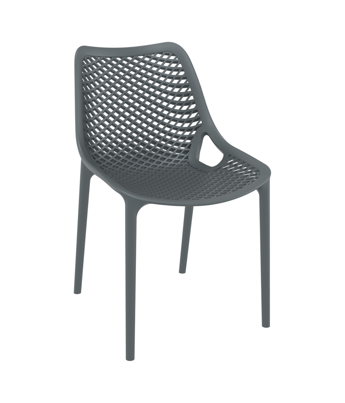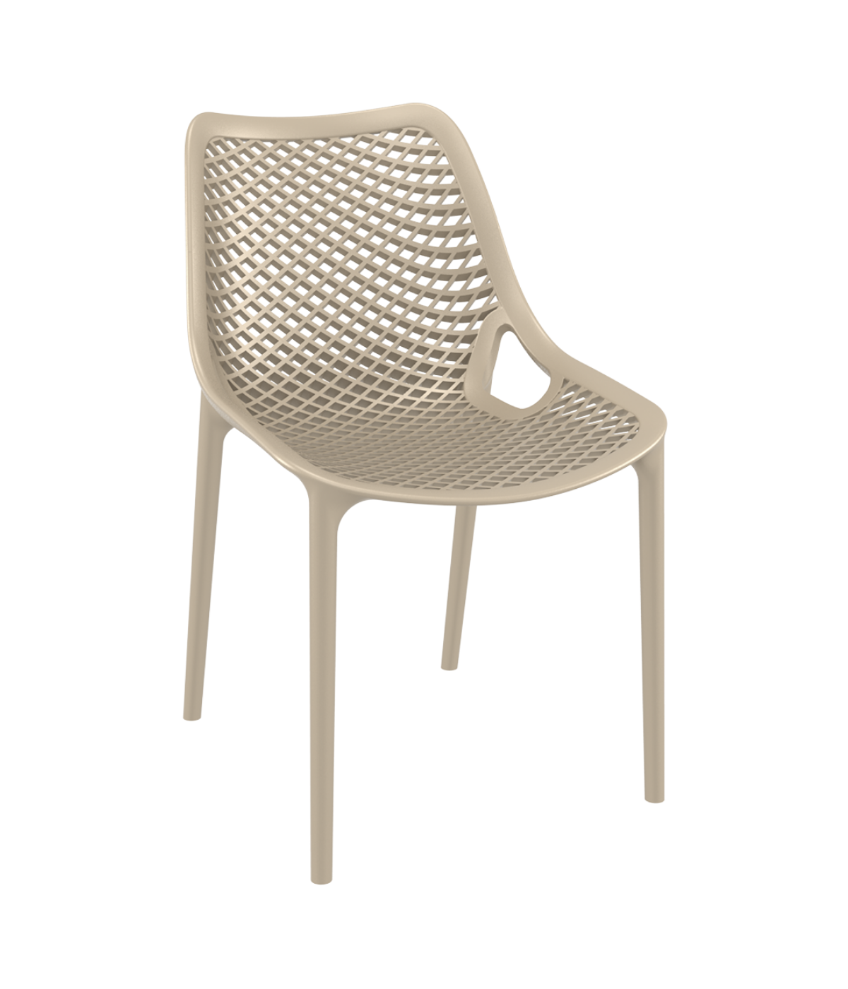 Air chair is produced with a single injection of polypropylene reinforced with glass fiber obtained by means of the latest generation of air moulding technology with neutral tones. For indoor and outdoor use.