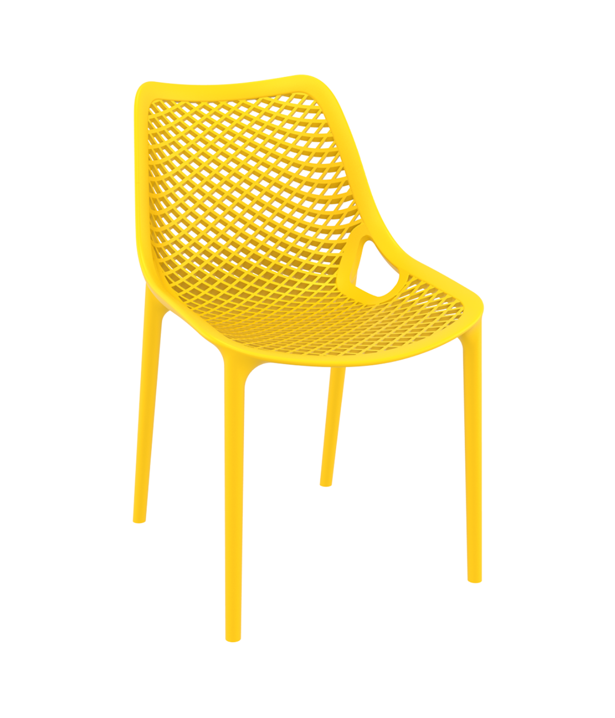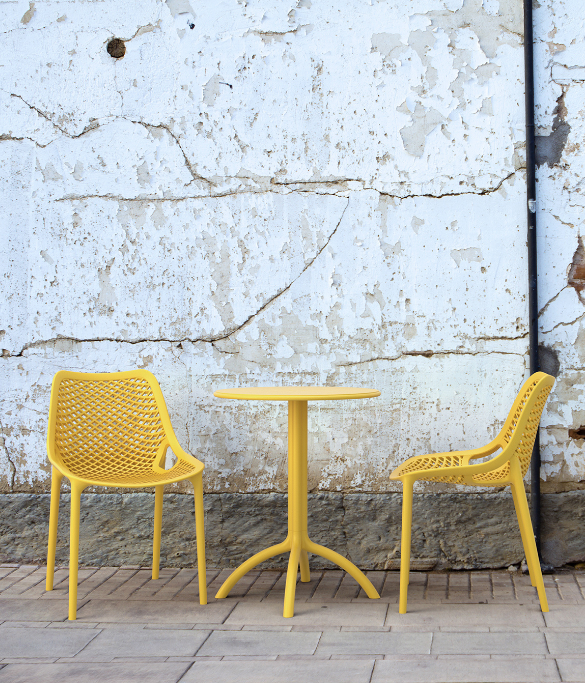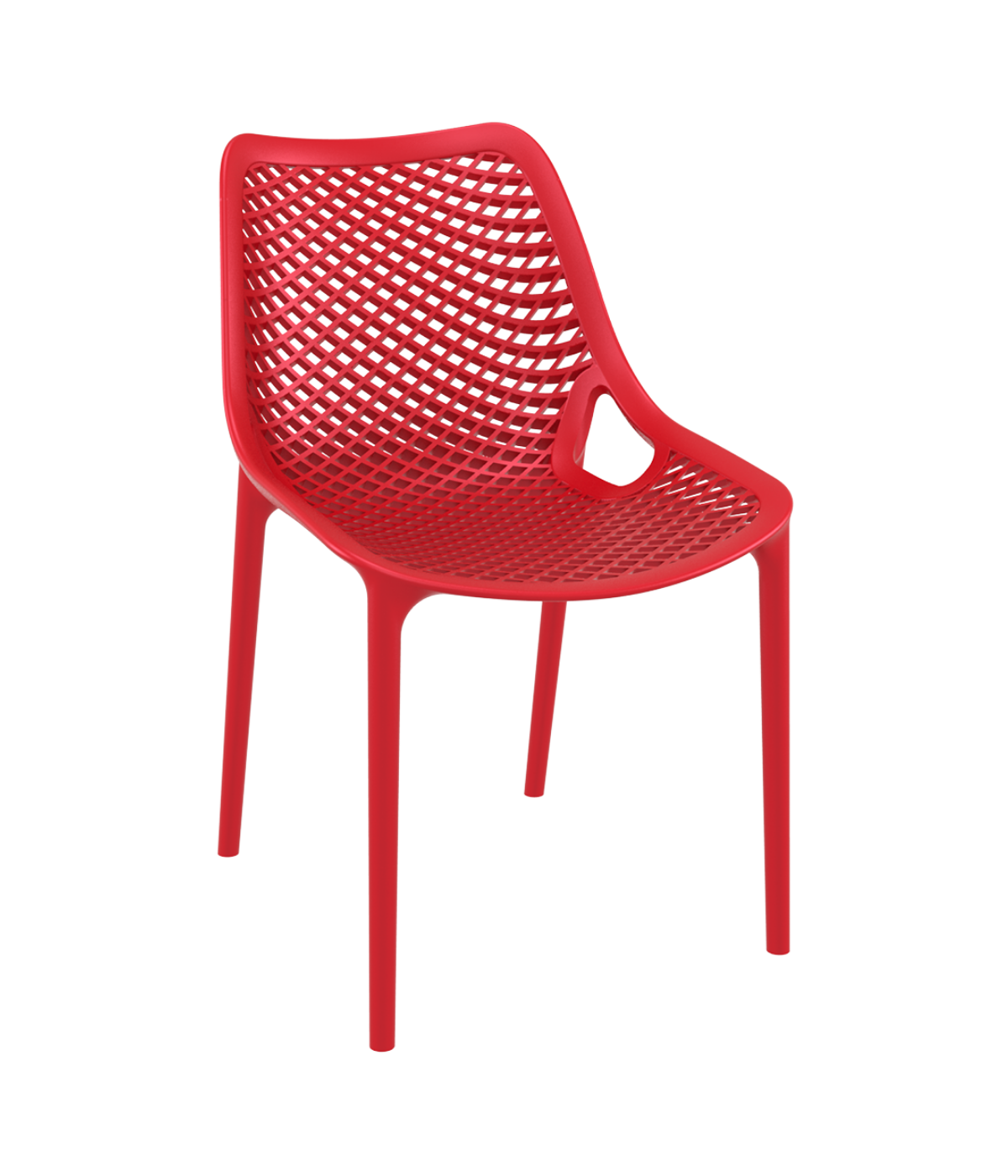 Air chair is produced with a single injection of polypropylene reinforced with glass fiber obtained by means of the latest generation of air moulding technology with neutral tones. For indoor and outdoor use.