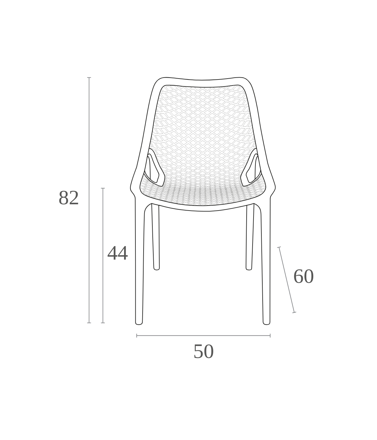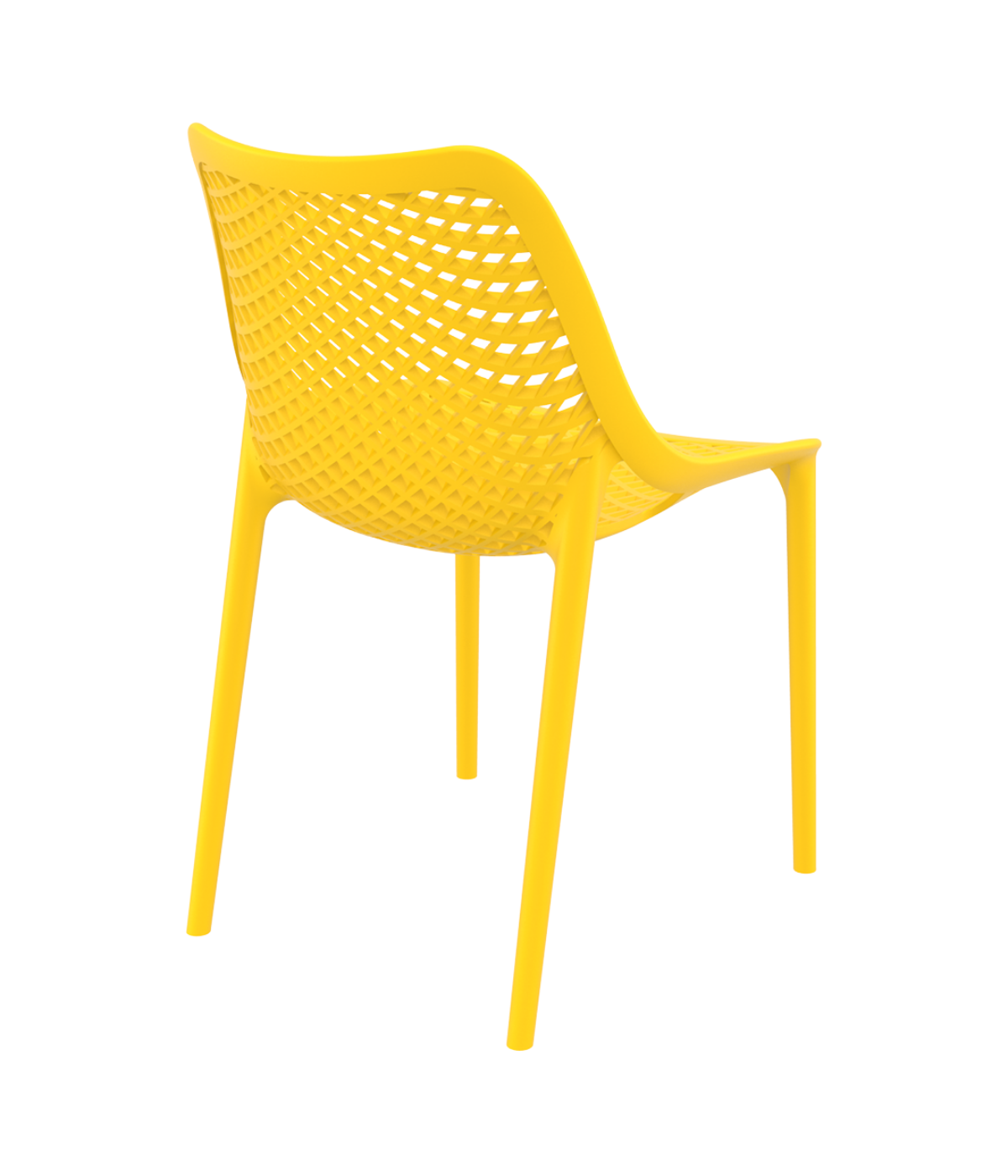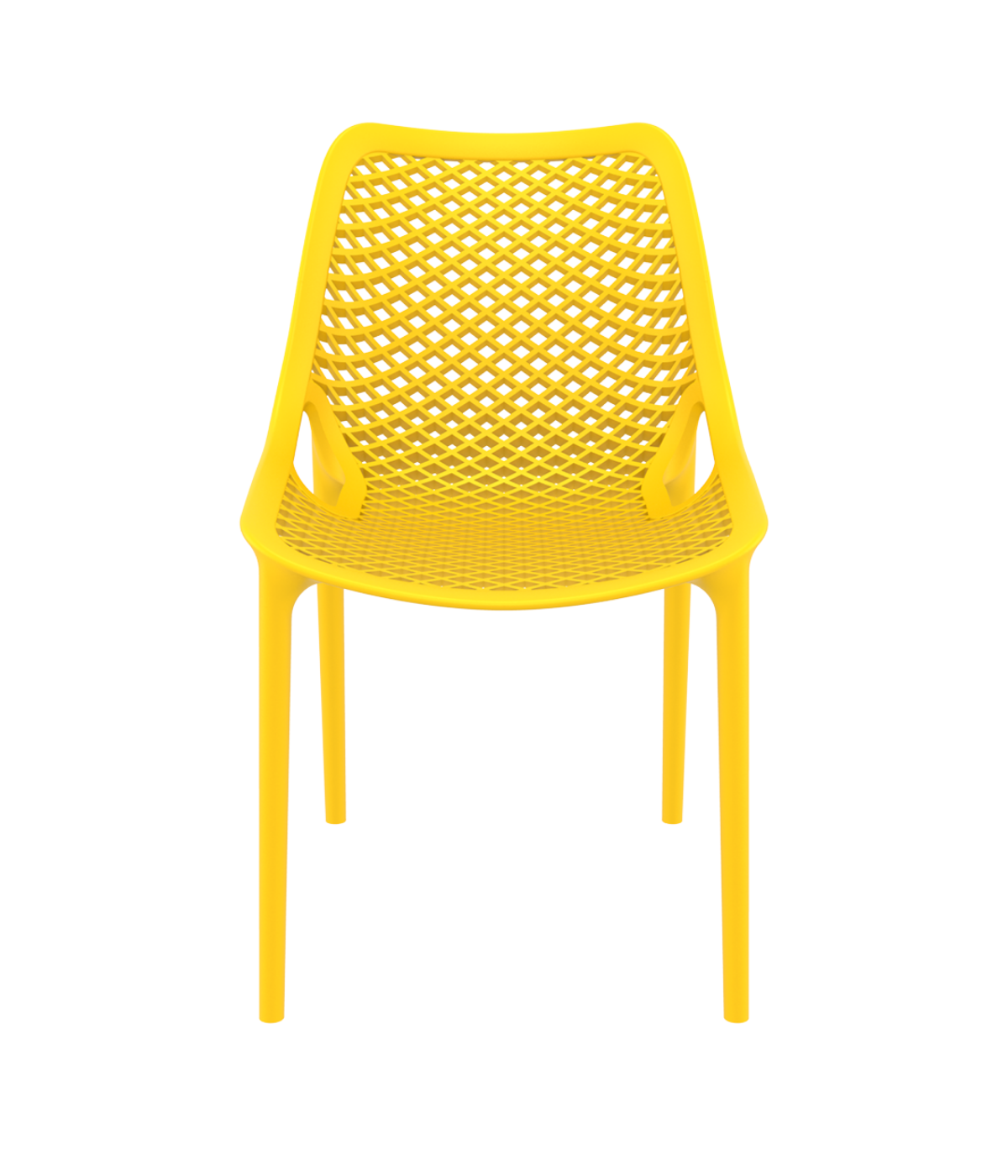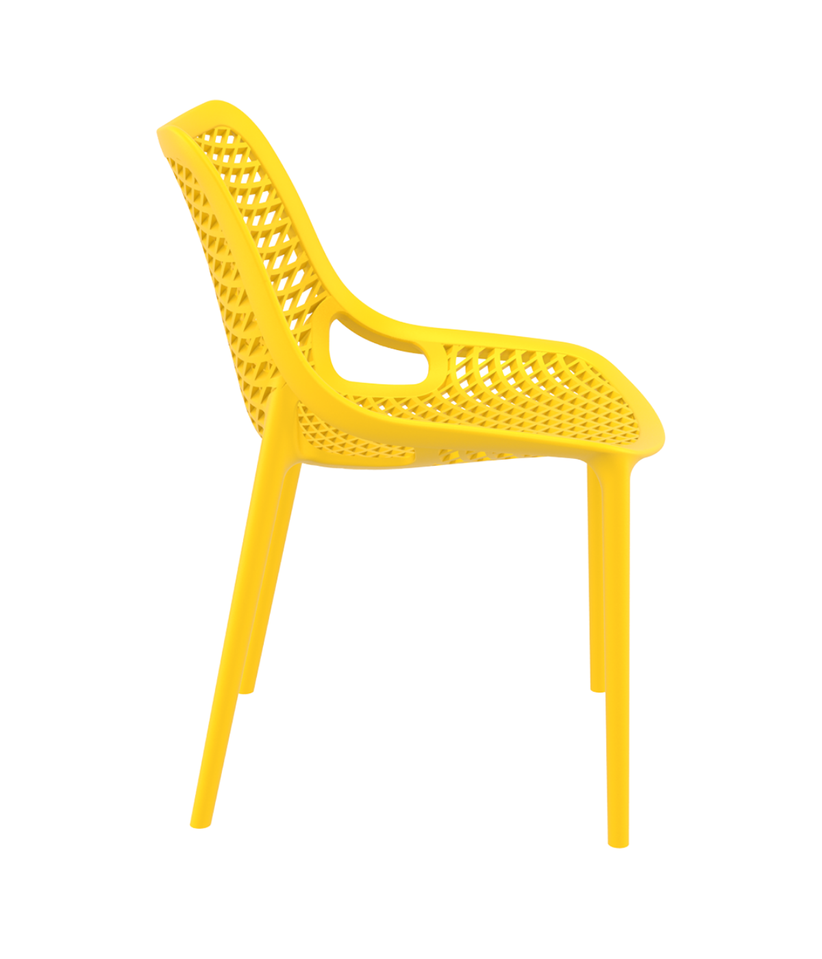 Air chair is produced with a single injection of polypropylene reinforced with glass fiber obtained by means of the latest generation of air moulding technology with neutral tones. For indoor and outdoor use.