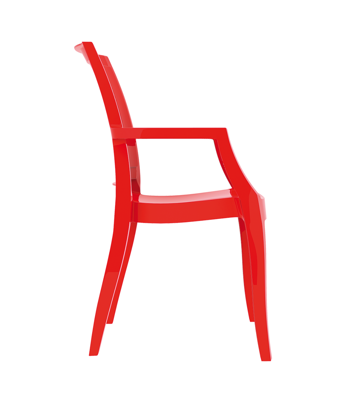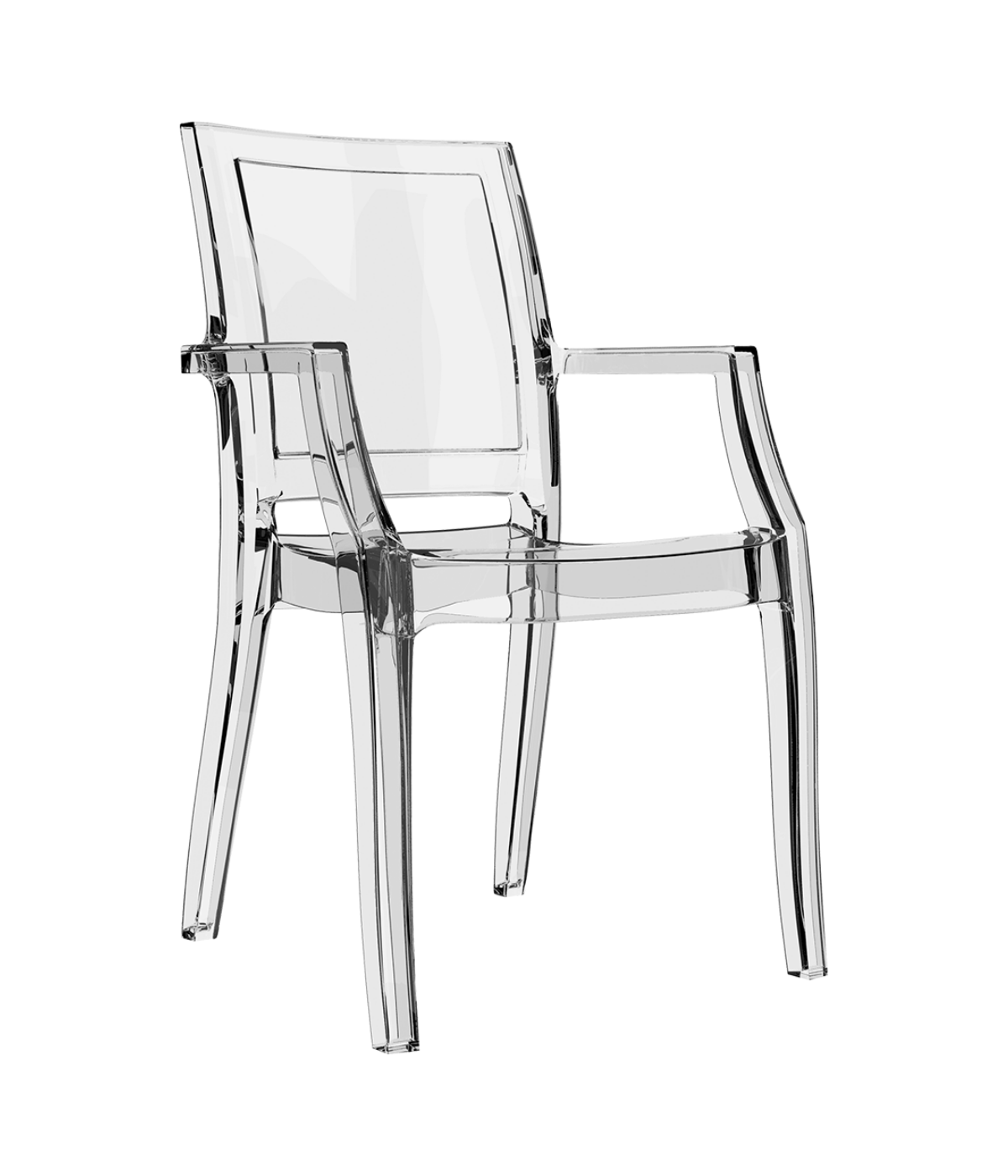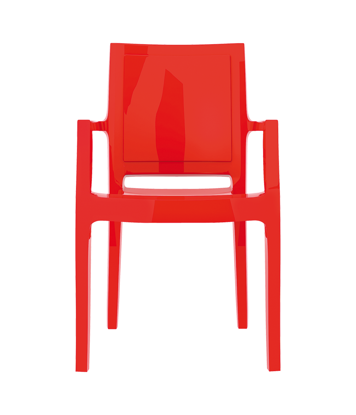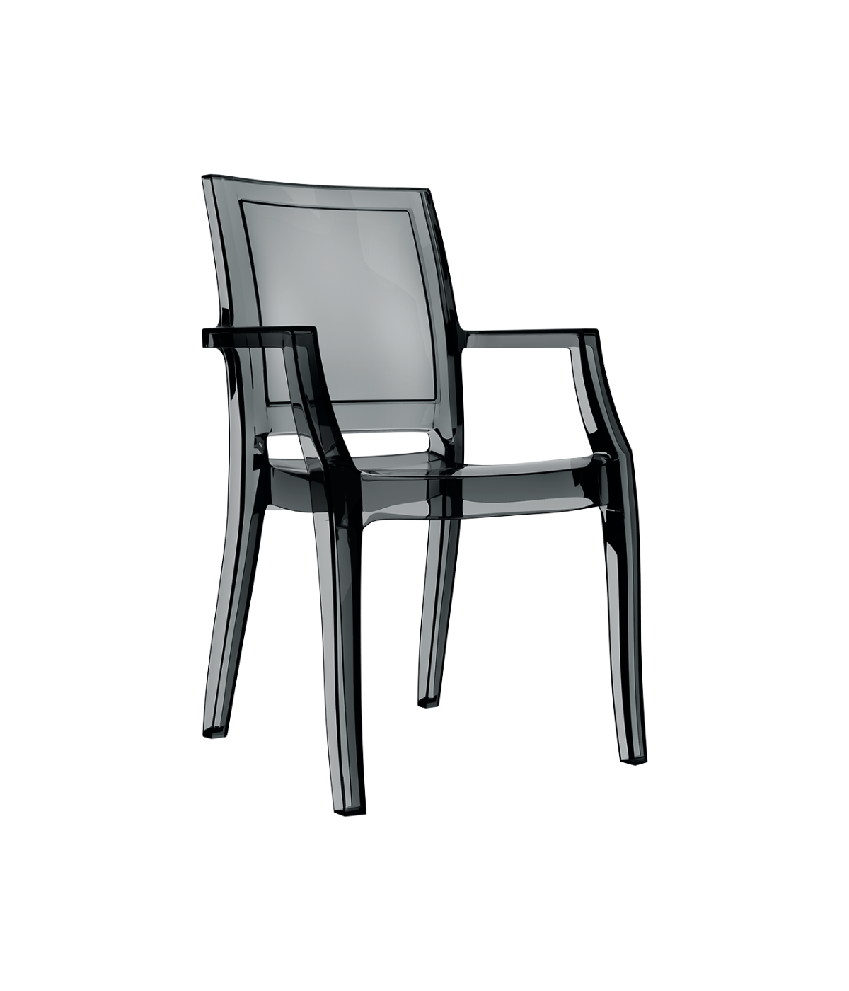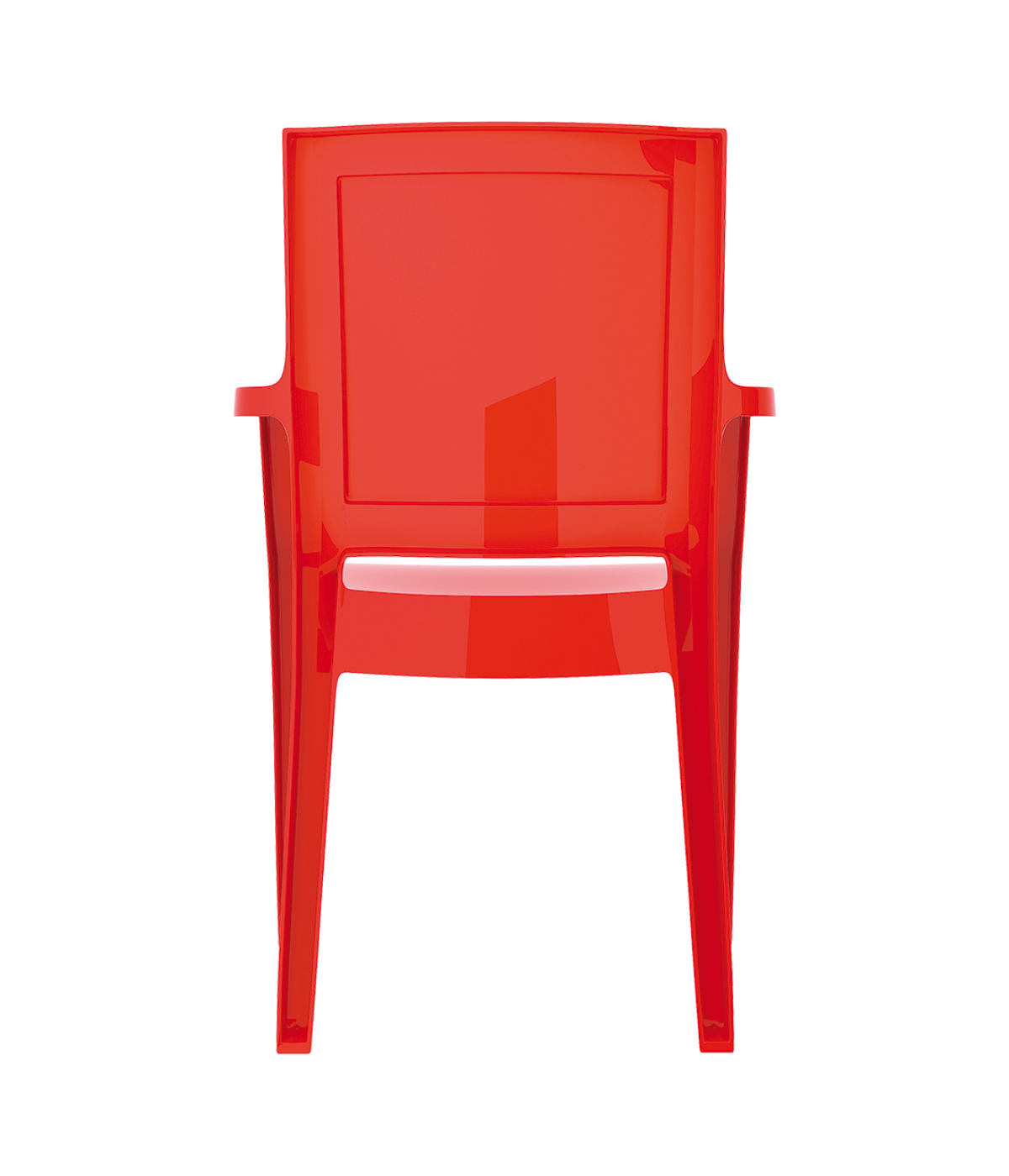 Stacking armchair for indoor and outdoor use in shiny technopolymer PA6 nylon or clear polycarbonate. Scratch resistant, self - extinguish classification V2, UV - resistant.