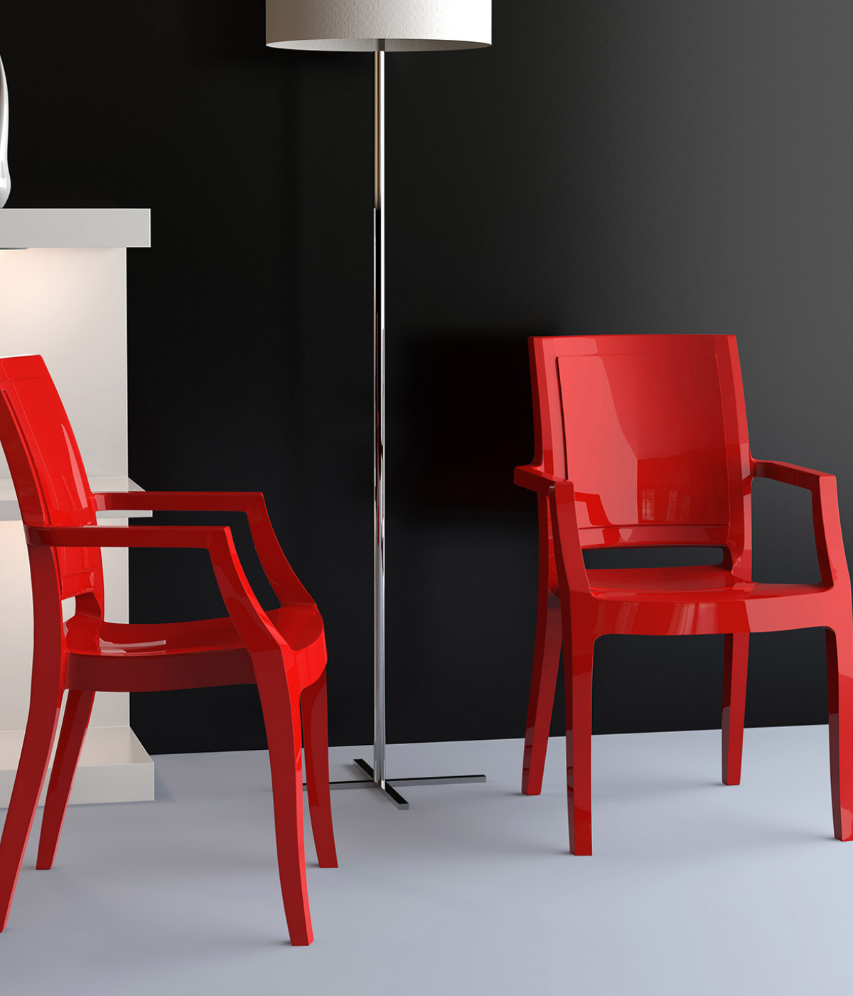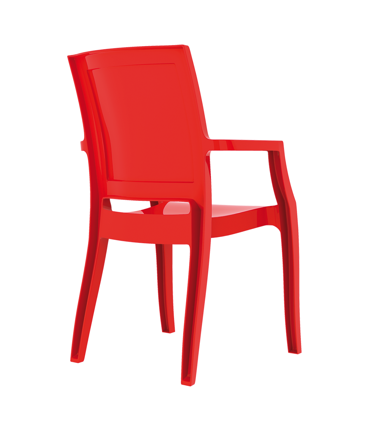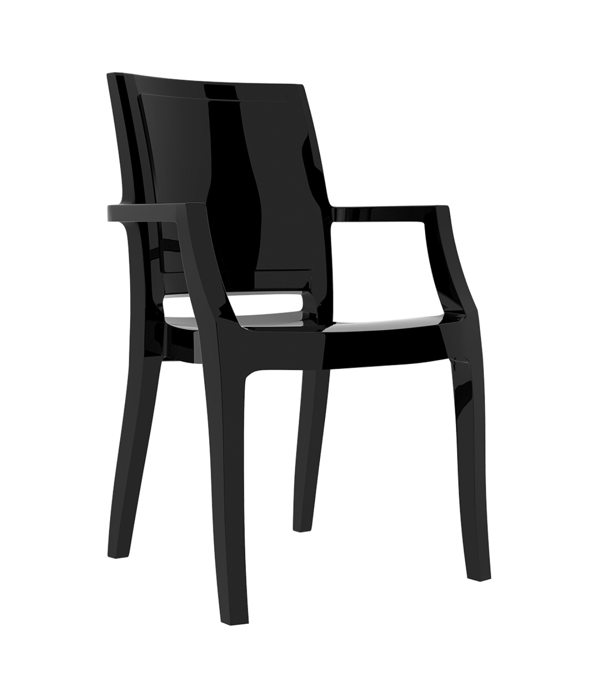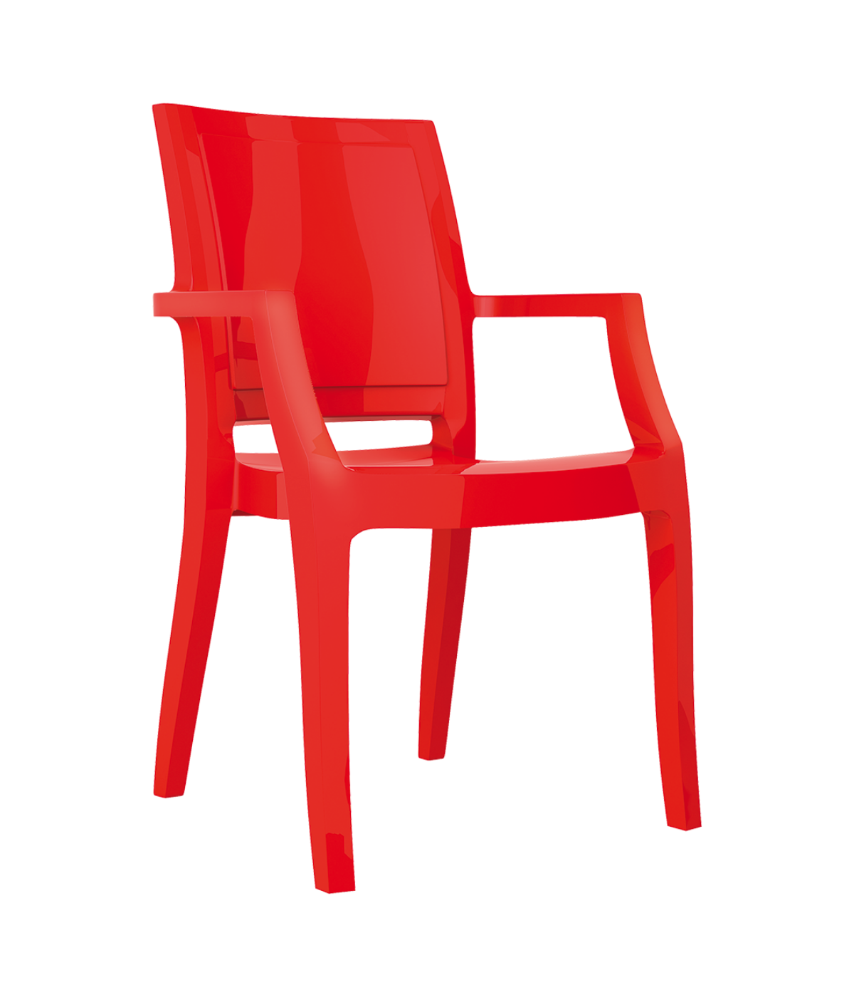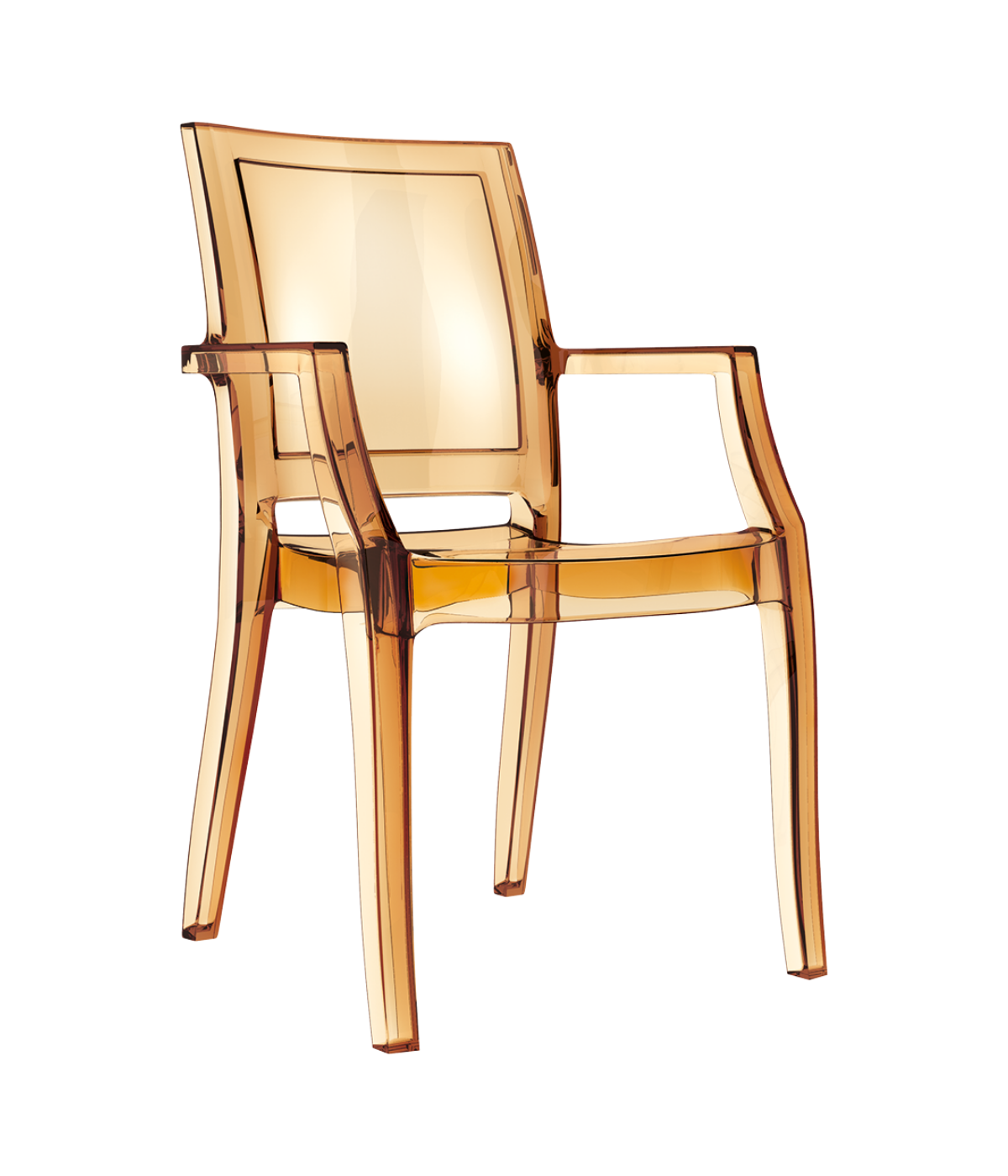 Stacking armchair for indoor and outdoor use in shiny technopolymer PA6 nylon or clear polycarbonate. Scratch resistant, self - extinguish classification V2, UV - resistant.