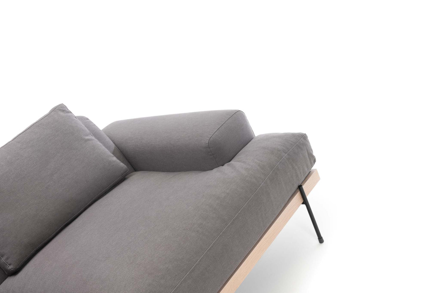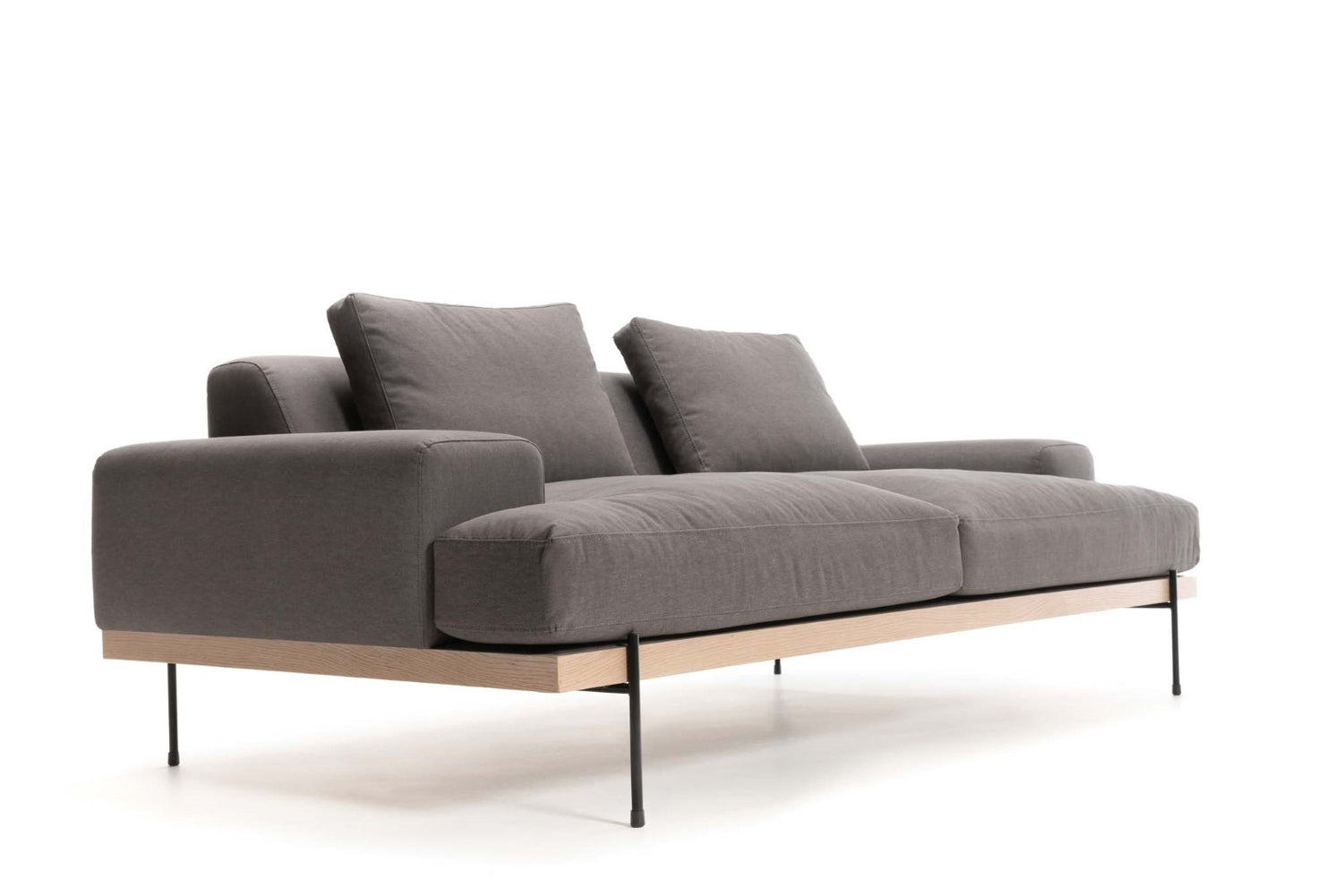 This modernistic sofa is stylish for any space. The light profile of the base perfectly supports the plush cushions creating harmony within its balance and form. This sofa is upholstered in 100% cotton easy clean fabric and available in Bone, Fog or Steel.