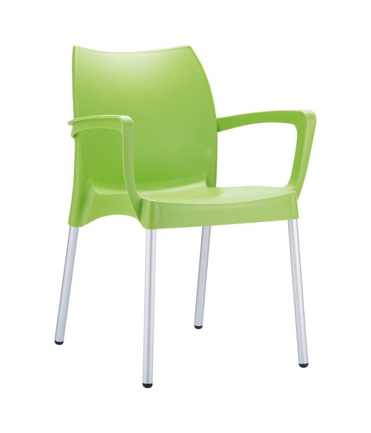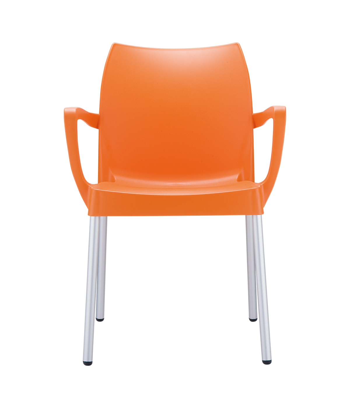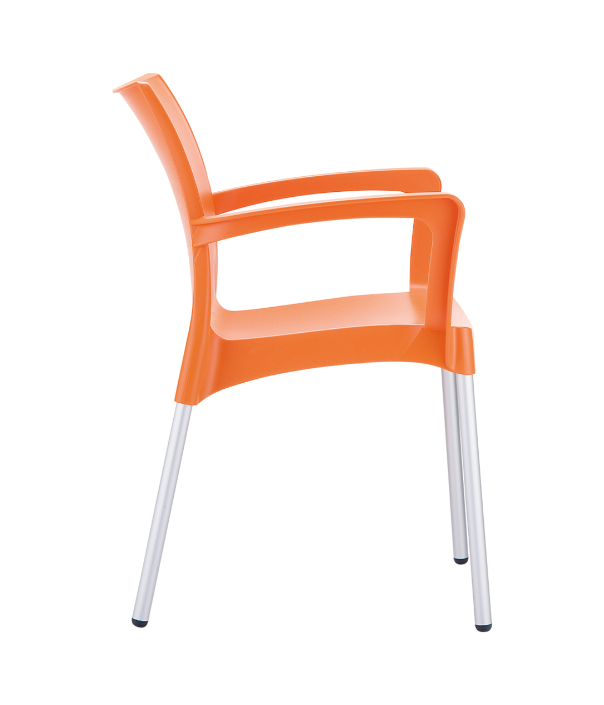 Stacking armchair with recyclable polypropylene seat and backrest and anodized aluminium legs. Diameter 25 mm. For indoor and outdoor use.