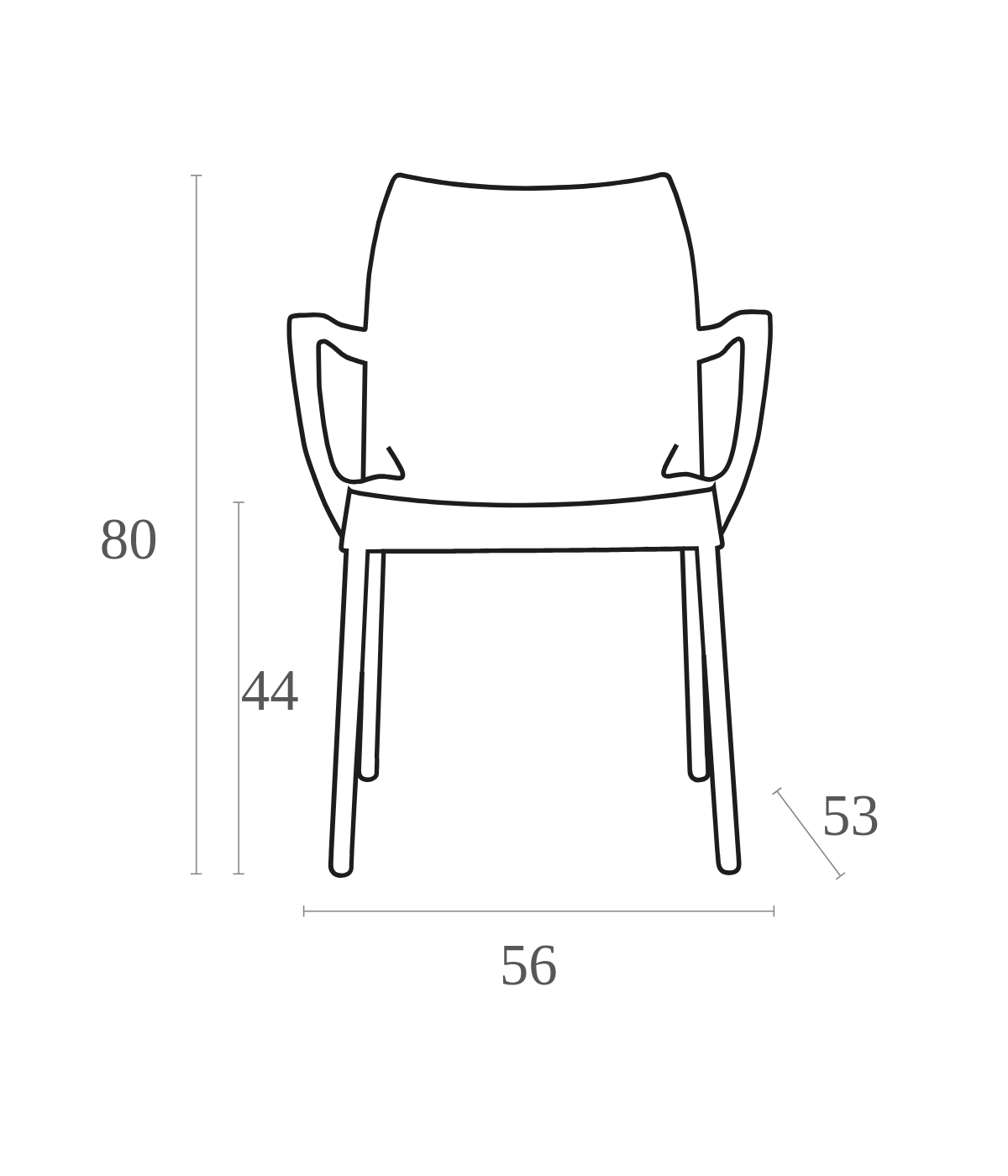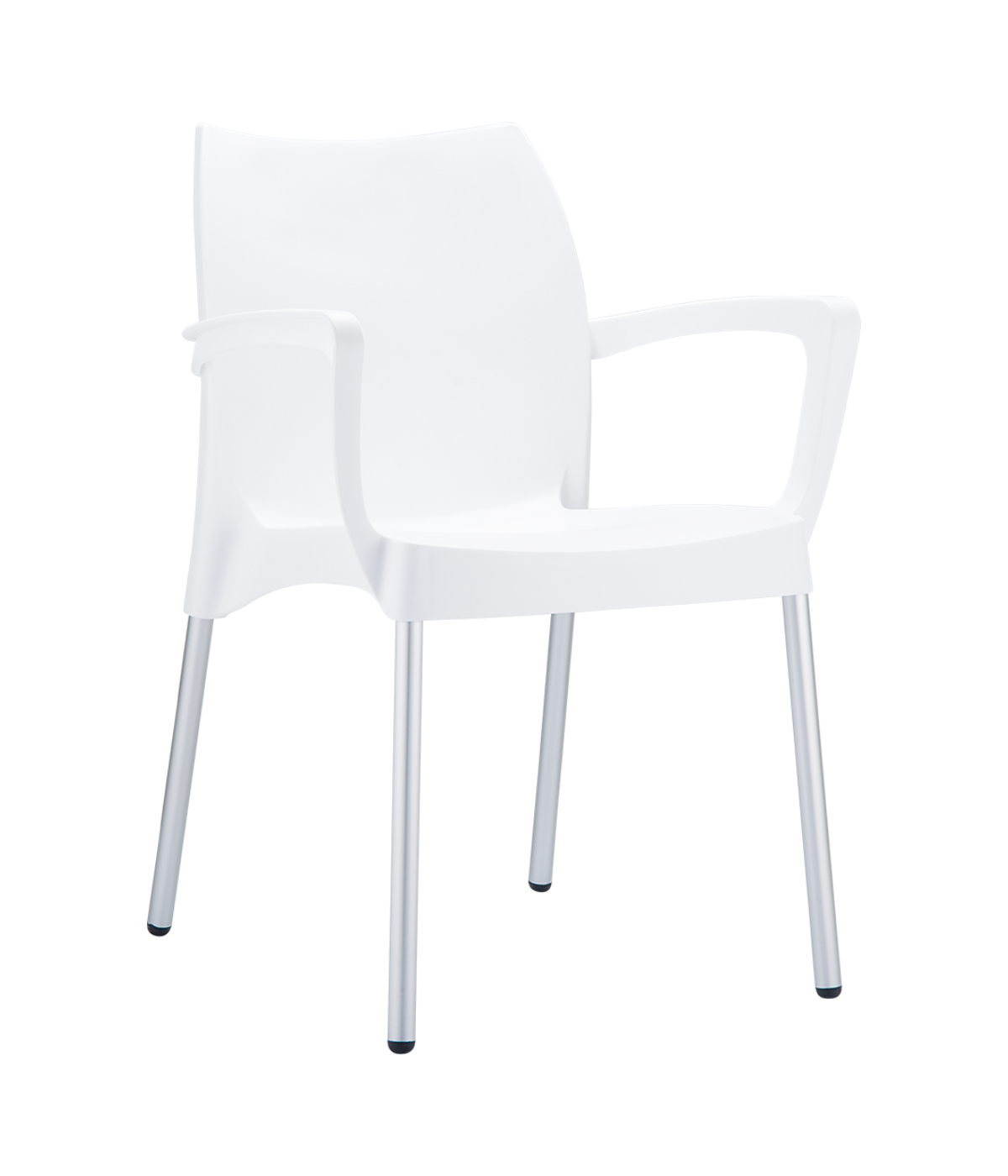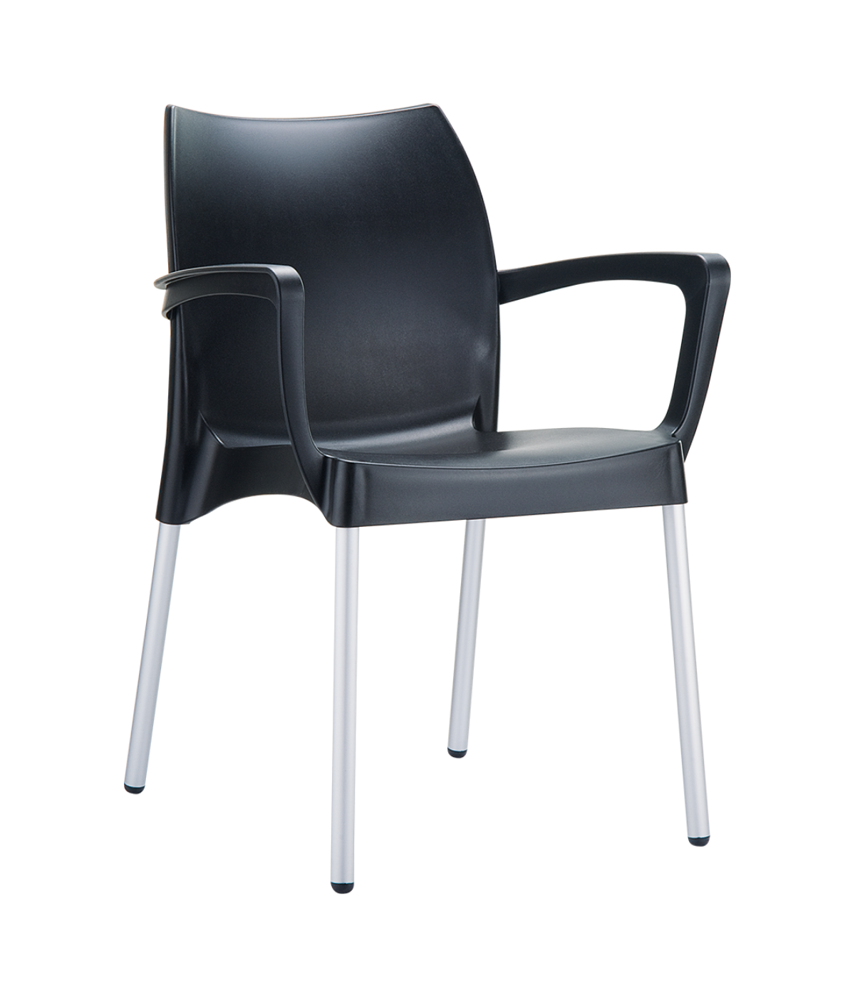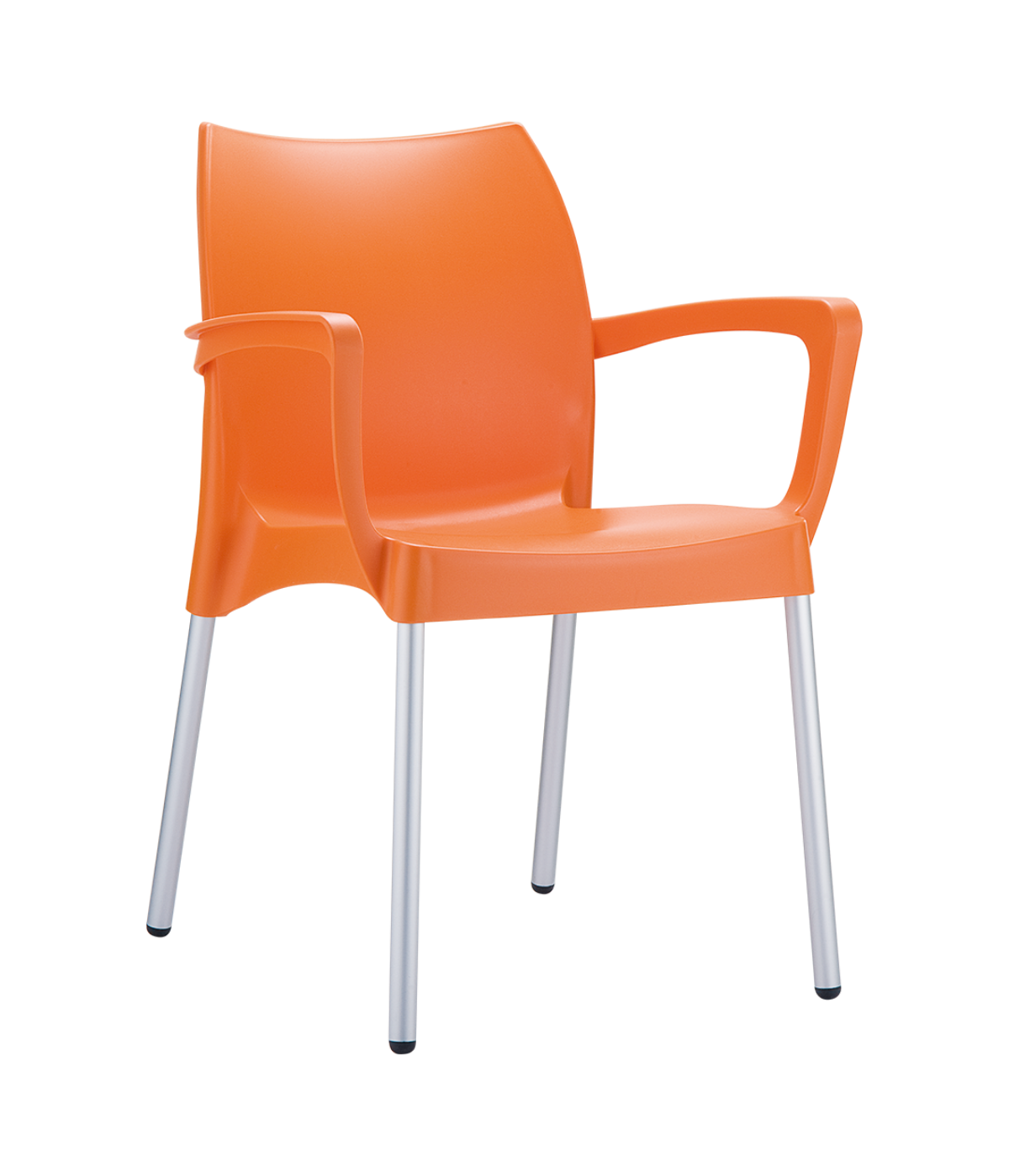 Stacking armchair with recyclable polypropylene seat and backrest and anodized aluminium legs. Diameter 25 mm. For indoor and outdoor use.