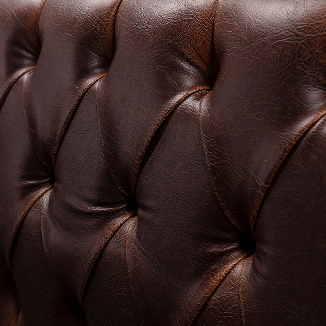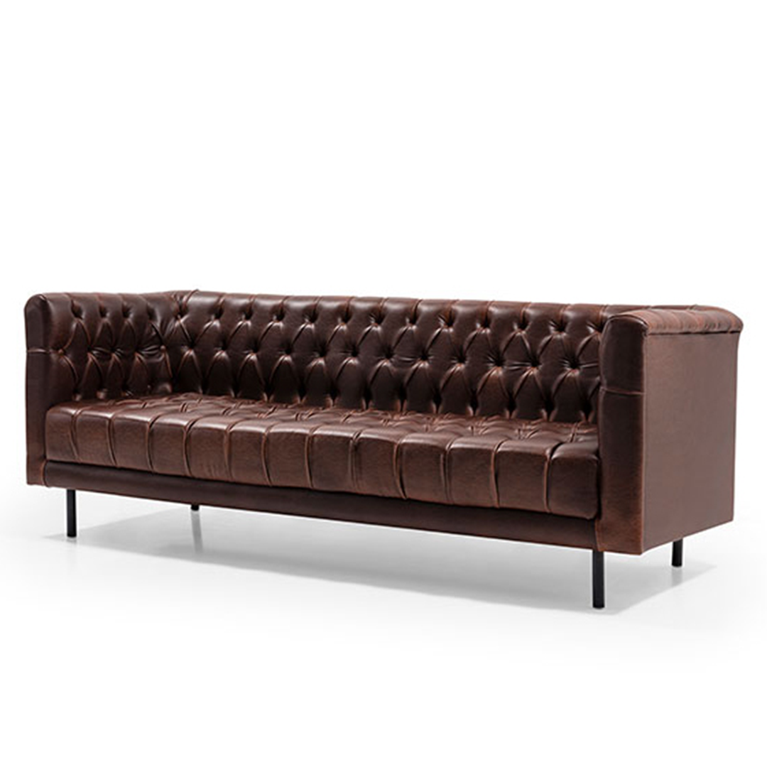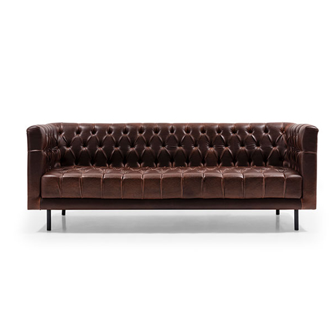 Luxurious top-grain leather brings a clubby feel to our mid-century-inspired Earl Sofa. With button tufting sitting on metal it's a couch you will fall in love with its level of detail.