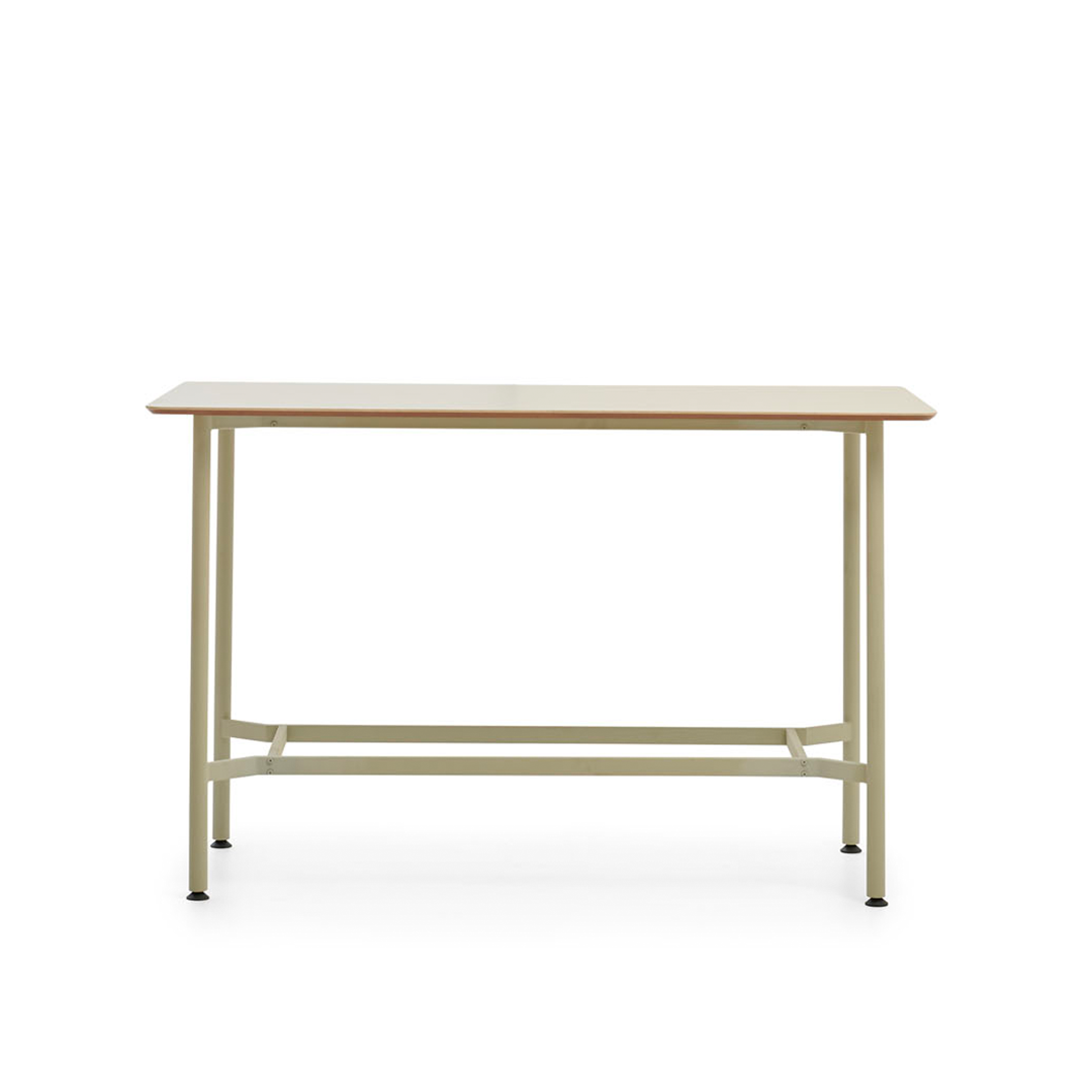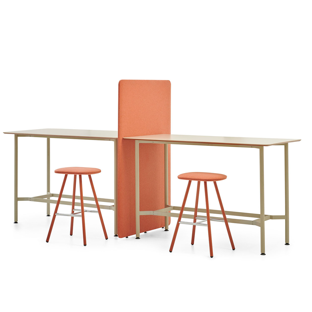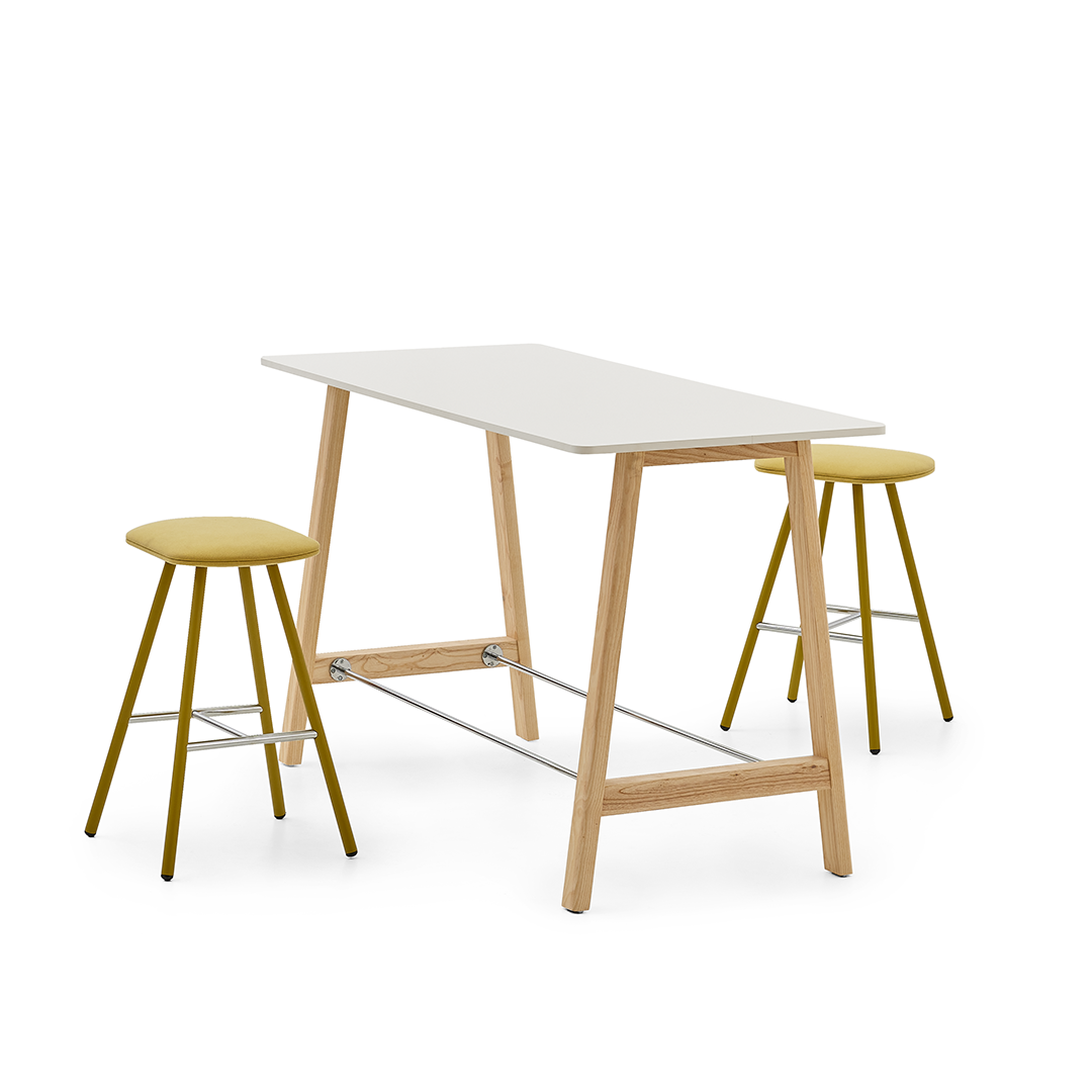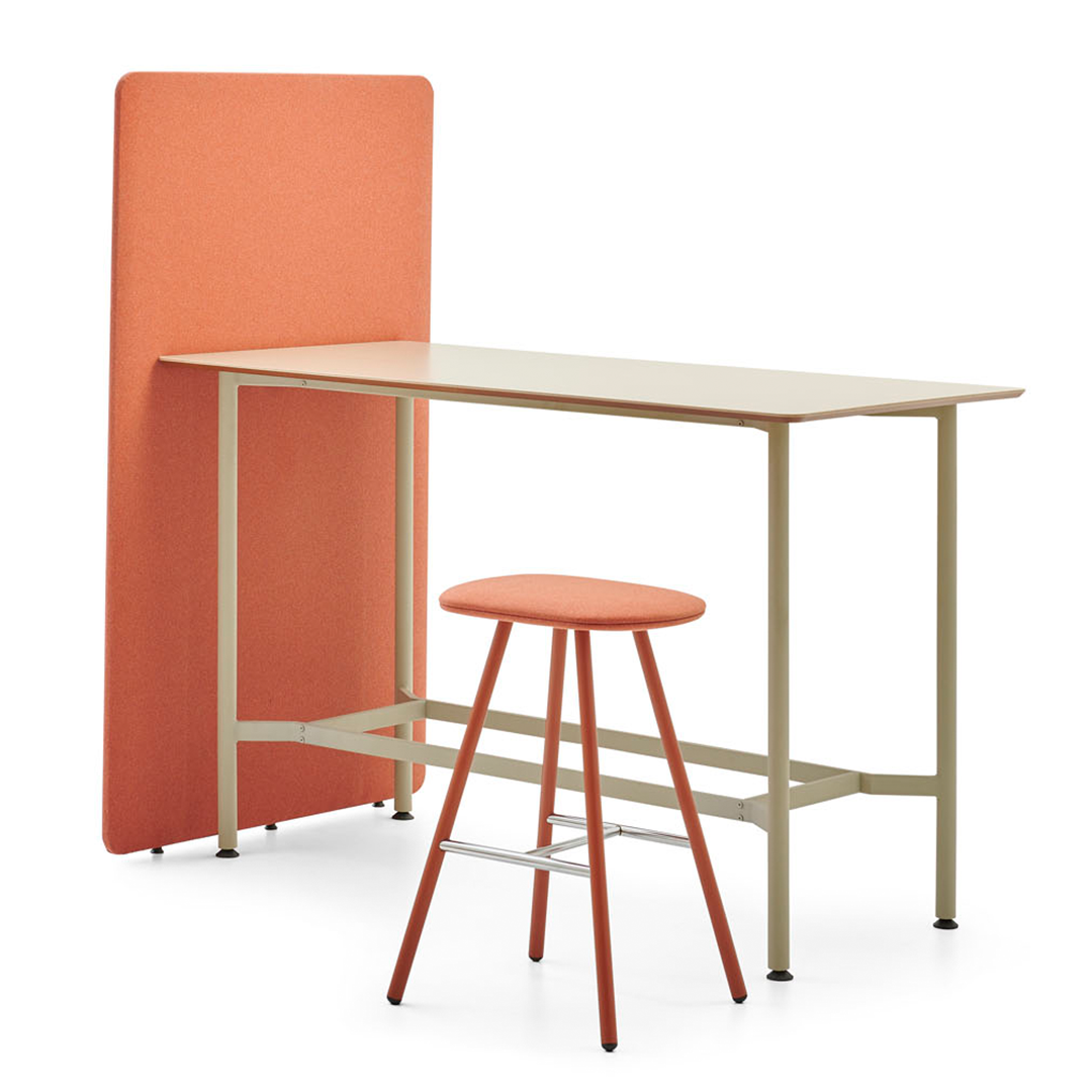 Calling for a team meeting? Loft meeting desk has a solid acrylic tabletop based on a wooden base having 2 metal supports beneath acting as leg rests.