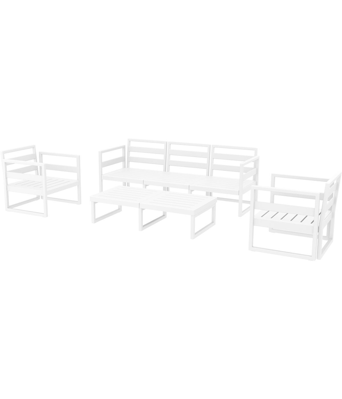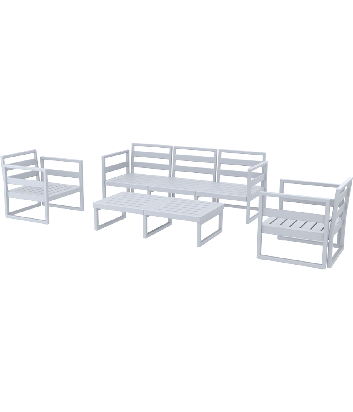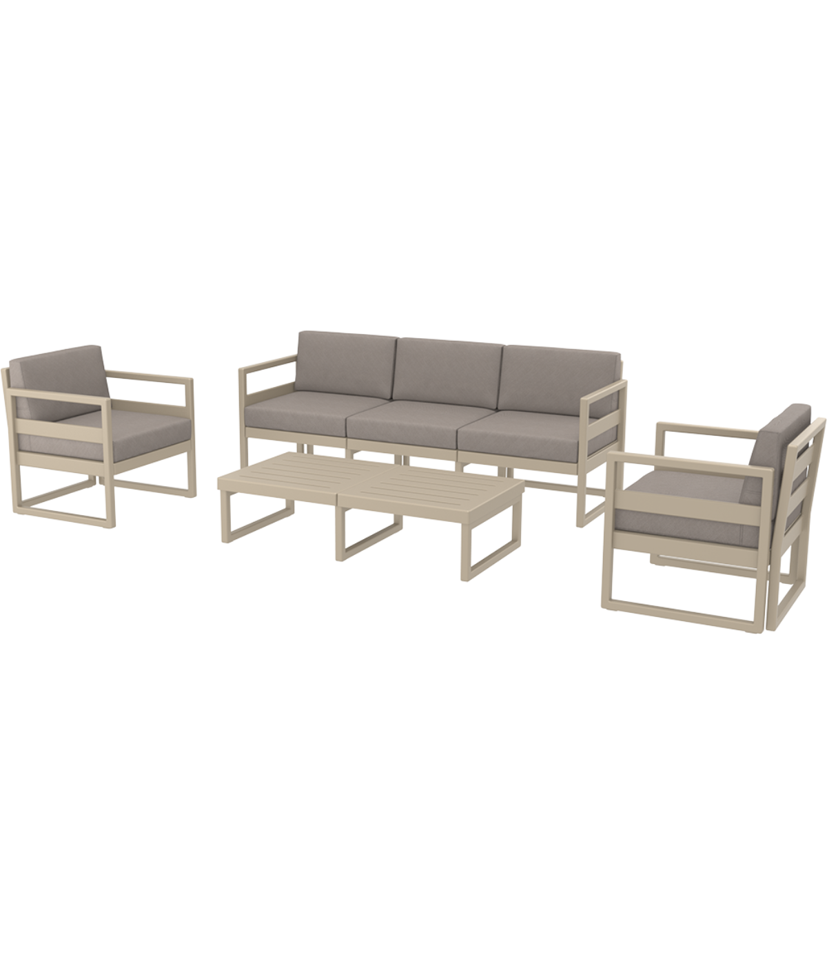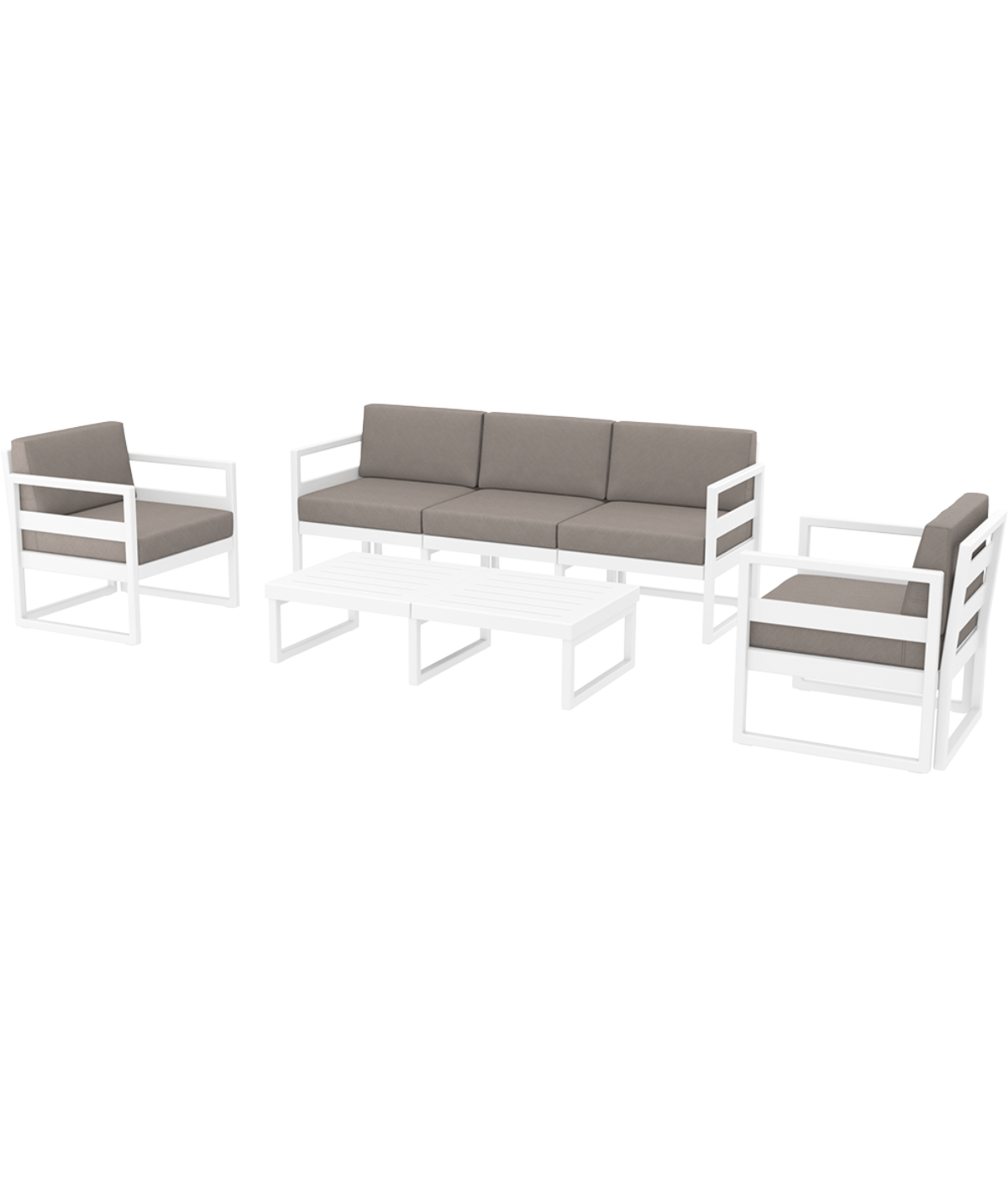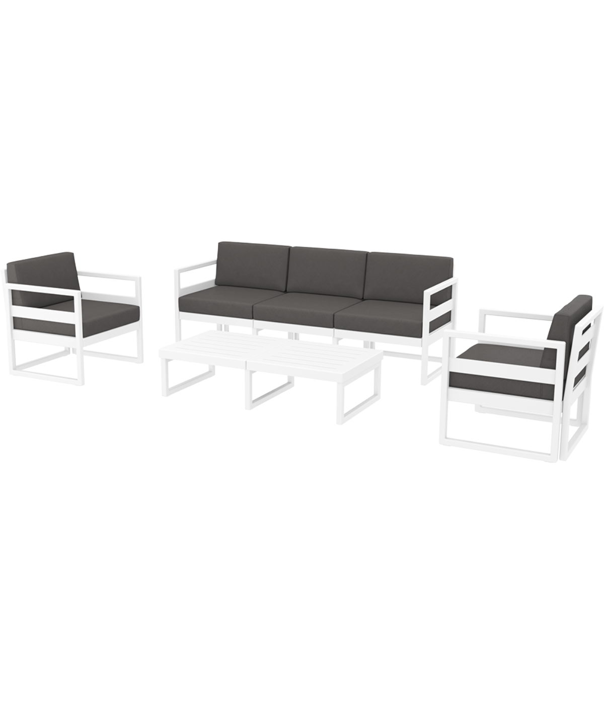 Mykonos Lounge Set XL is designed for easy self assembly, it is made of durable weather-resistant resin reinforced with glass fiber. Non-metallic frame will never unravel, rust or decay. It is UV protected which ensures the colors will not fade. Can be disassembled. For indoor and outdoor contract use.