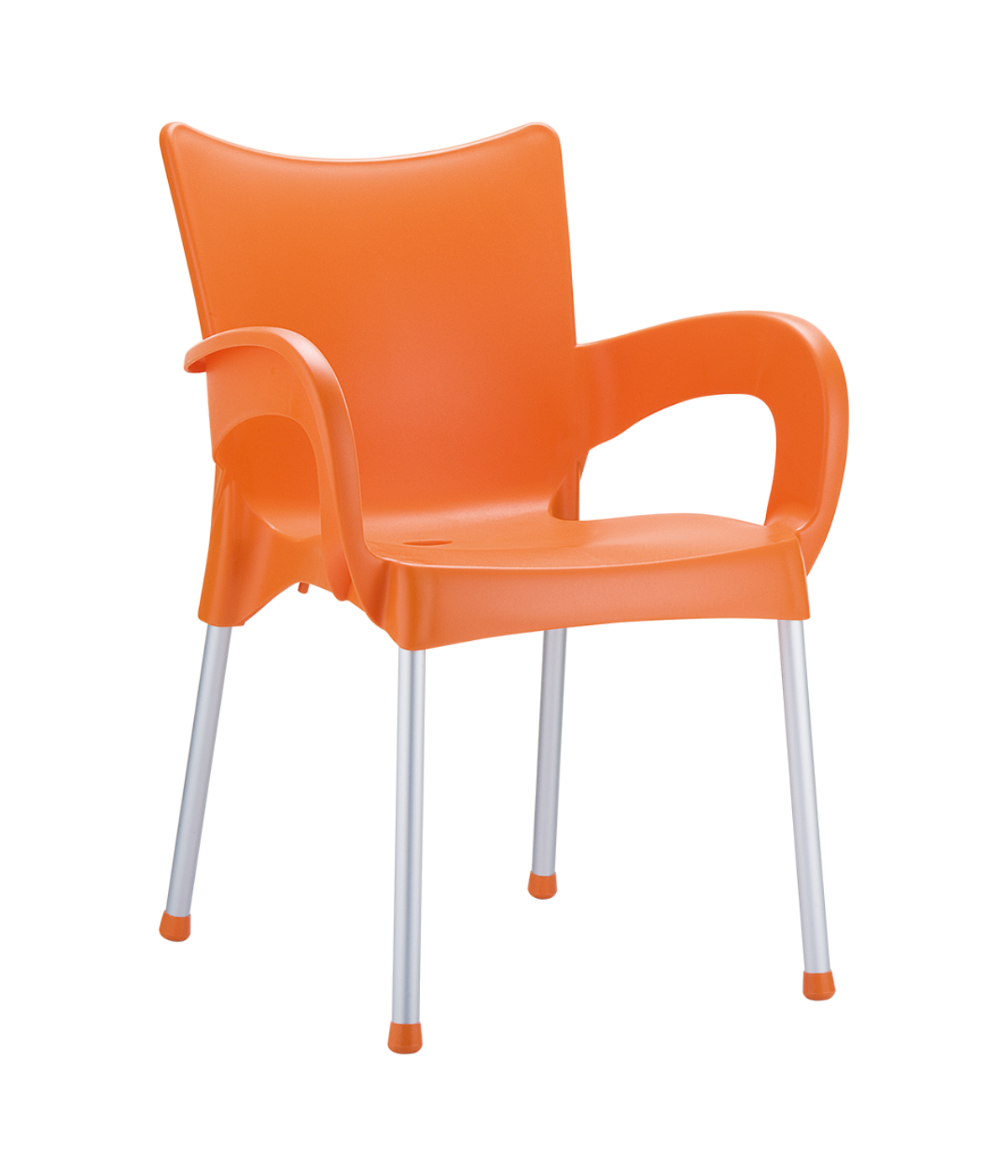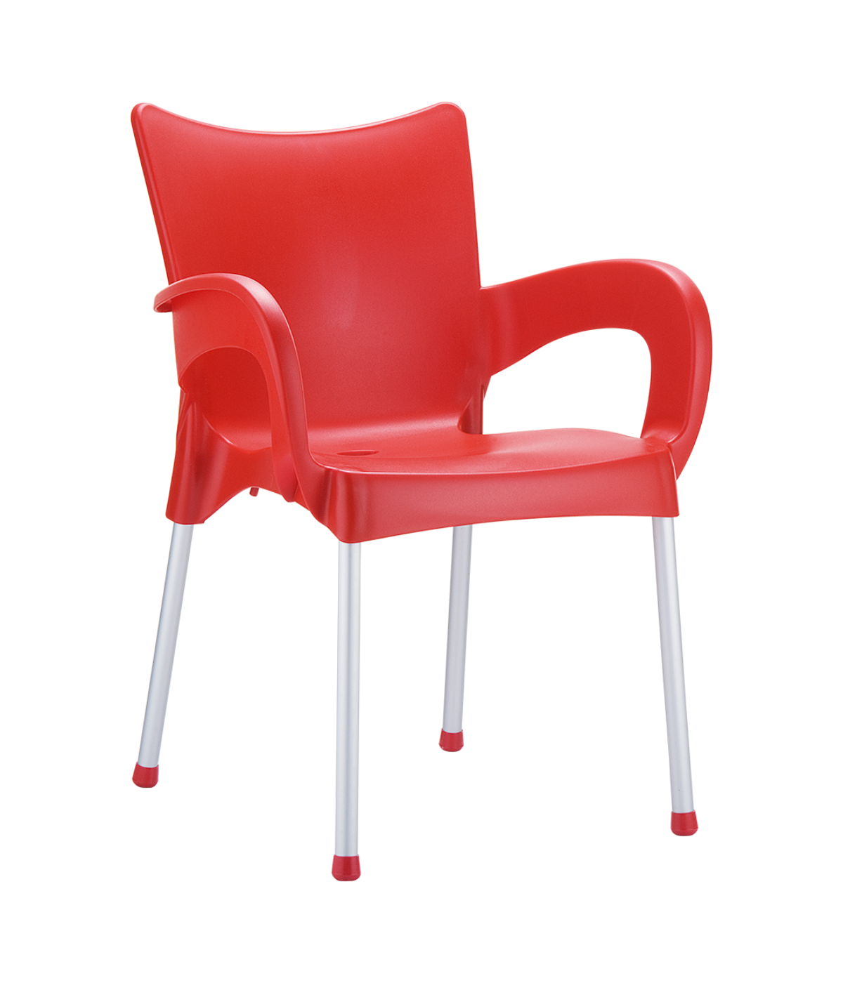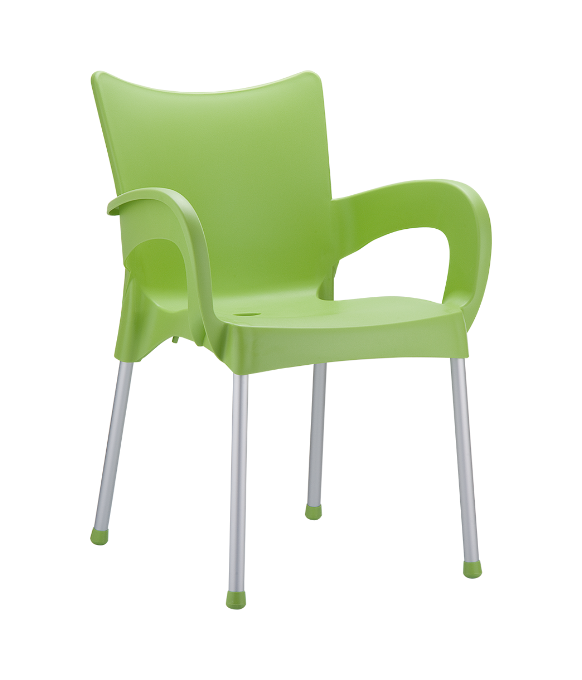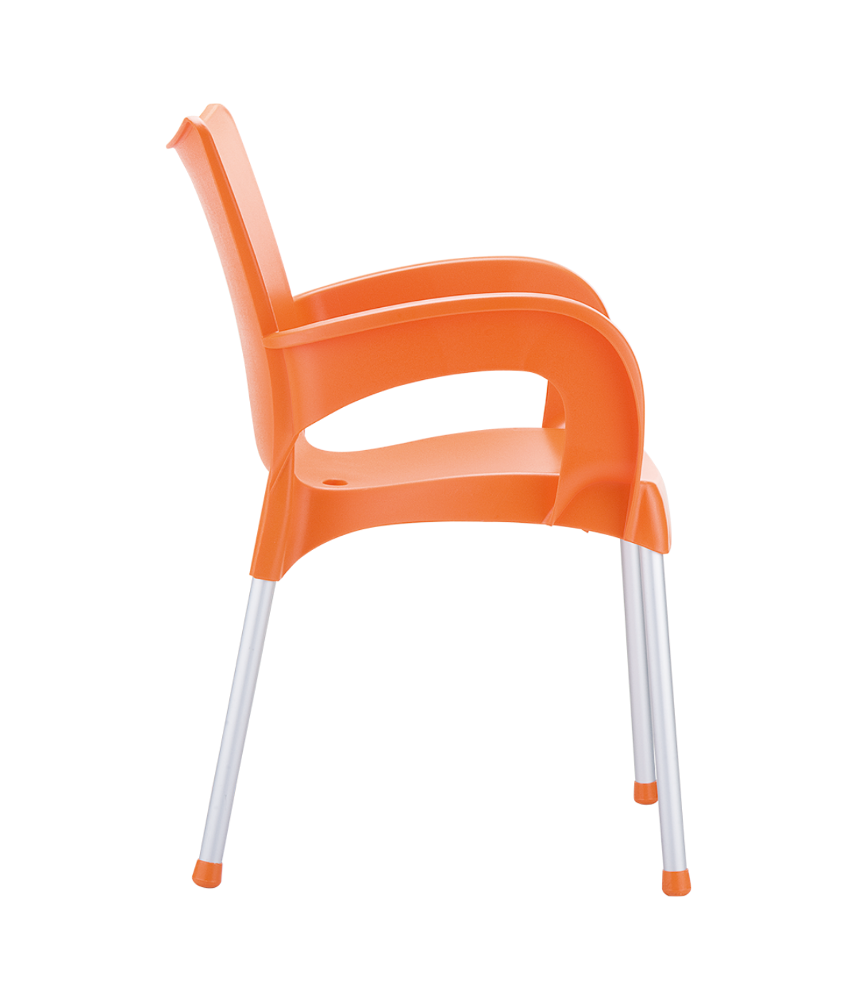 Stacking armchair with recyclable polypropylene seat and backrest and anodized aluminium legs. Diameter 25 mm. For indoor and outdoor use.