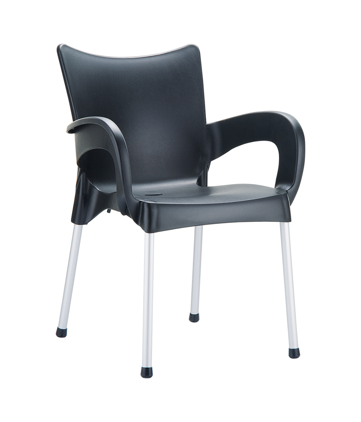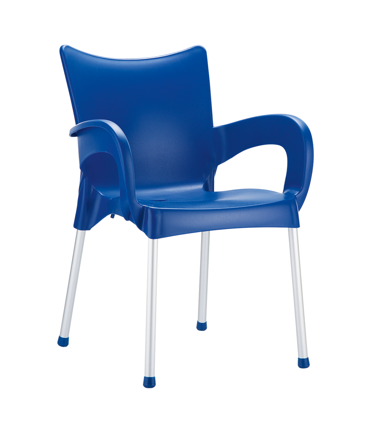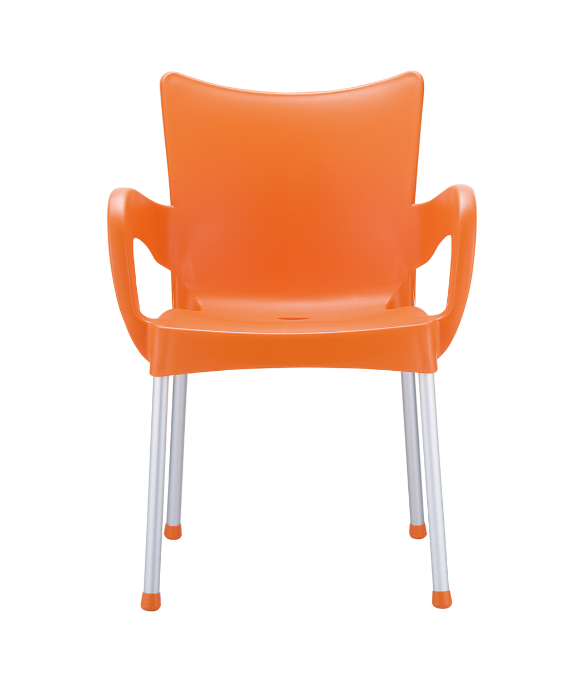 Stacking armchair with recyclable polypropylene seat and backrest and anodized aluminium legs. Diameter 25 mm. For indoor and outdoor use.