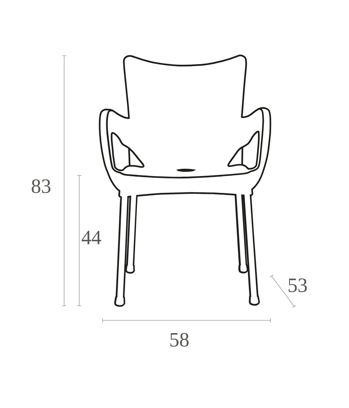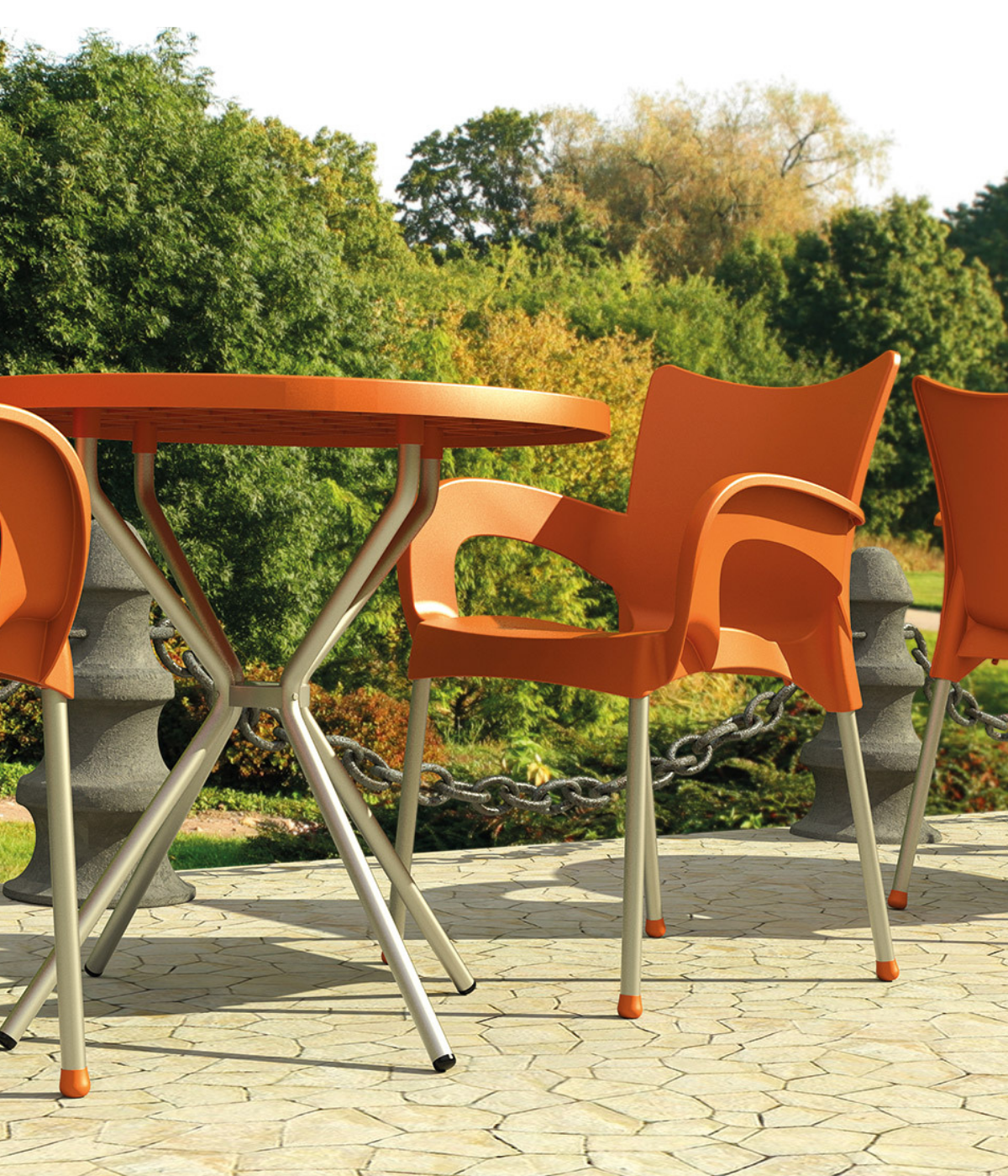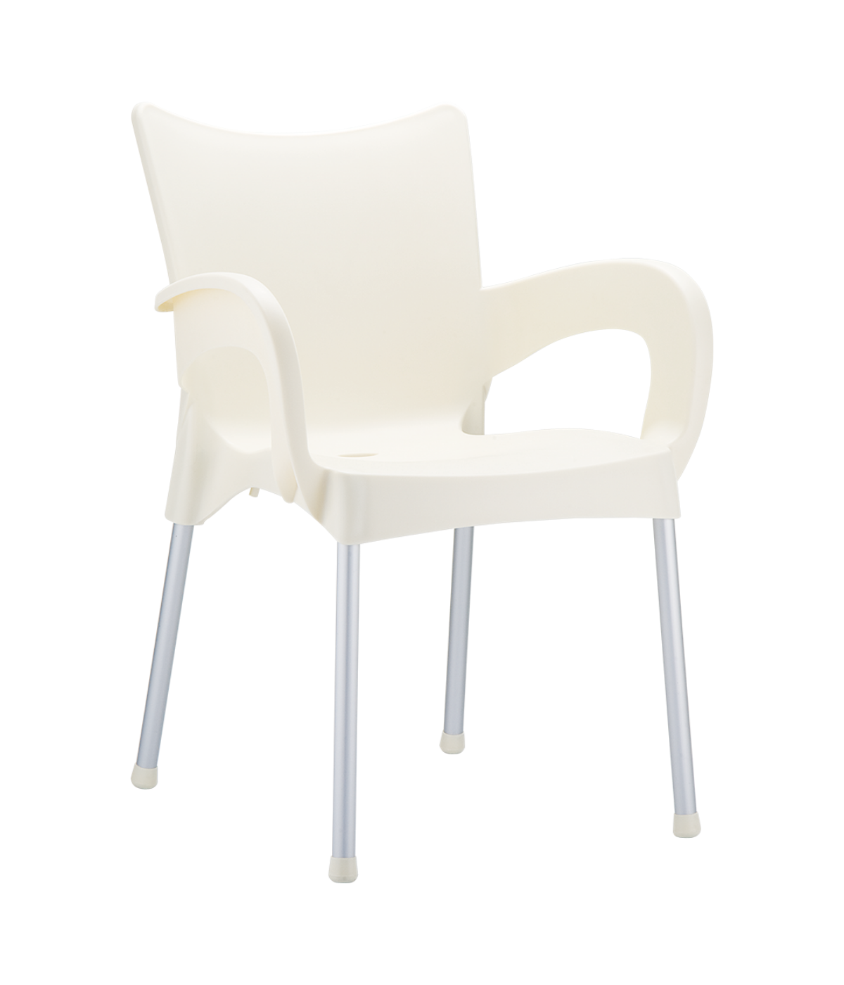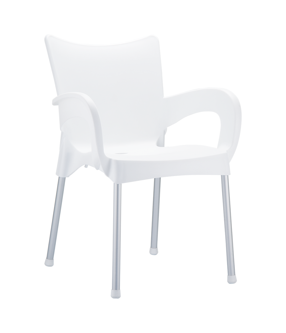 Stacking armchair with recyclable polypropylene seat and backrest and anodized aluminium legs. Diameter 25 mm. For indoor and outdoor use.