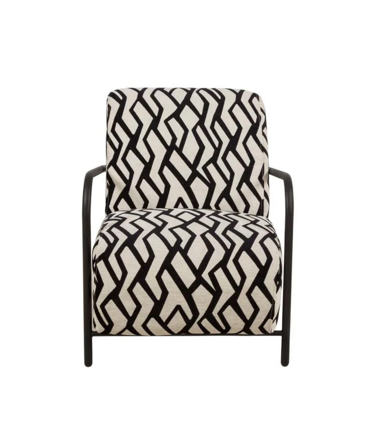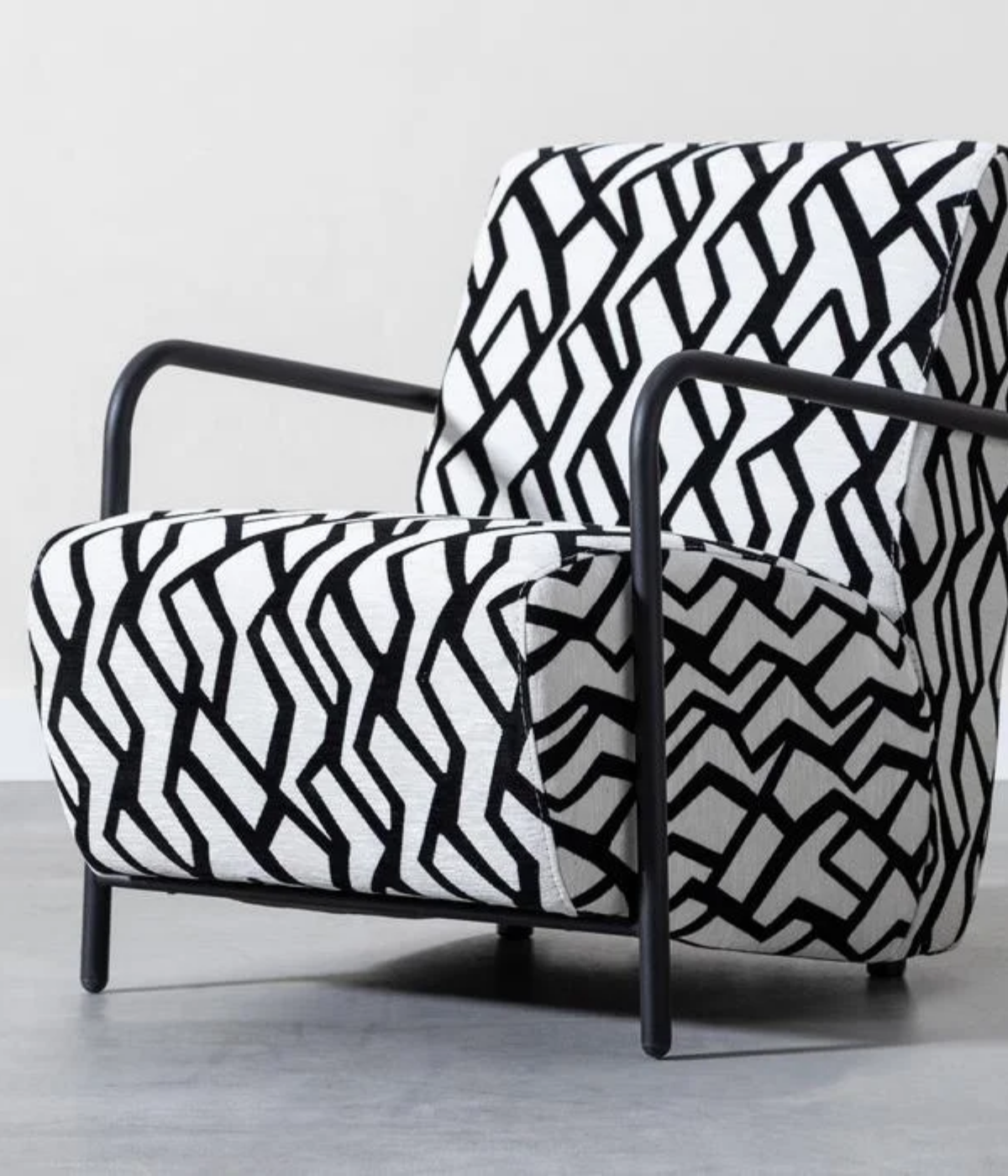 Having a modern look with its geometric patterns, the Sole Patterned Armchair adds a retro style to your living space. The patterned armchair, which stands out with its comfort as well as its metal frame design, will be your signature for your home.