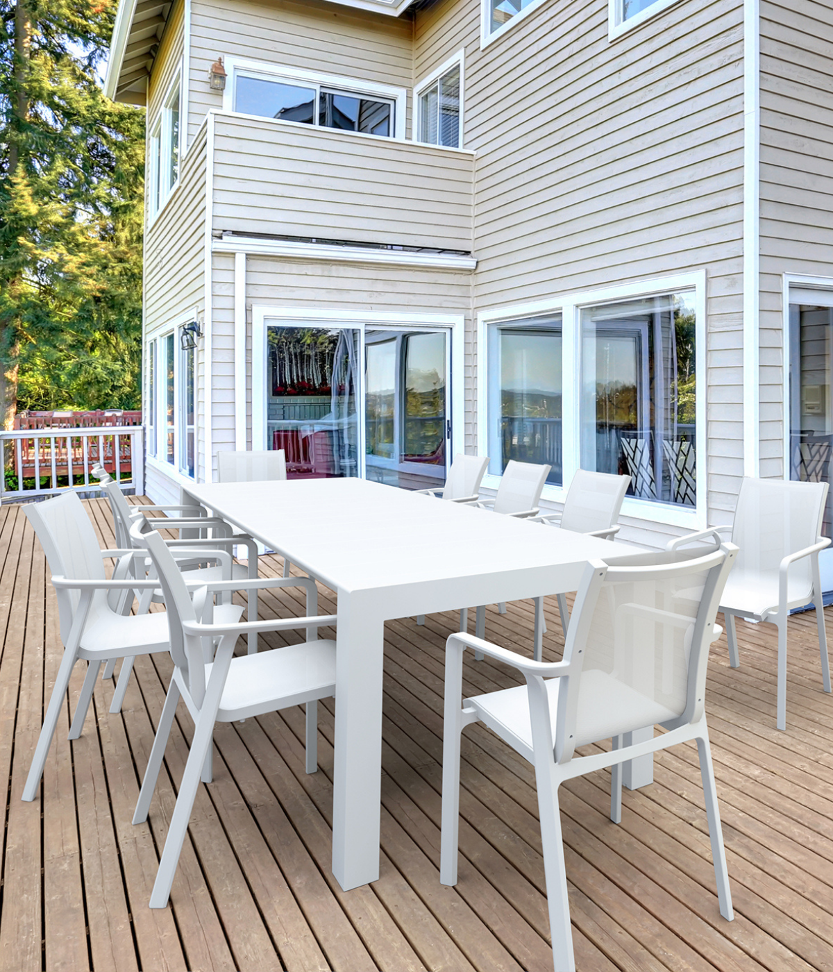 Extendible table from 260 to 300 cm in polypropylene reinforced with glass fiber. Easily expandable, giving you a choice of two size options. Smart extending mechanism makes it easy to adjust the table to your preferred size. For indoor and outdoor use with UV protection.