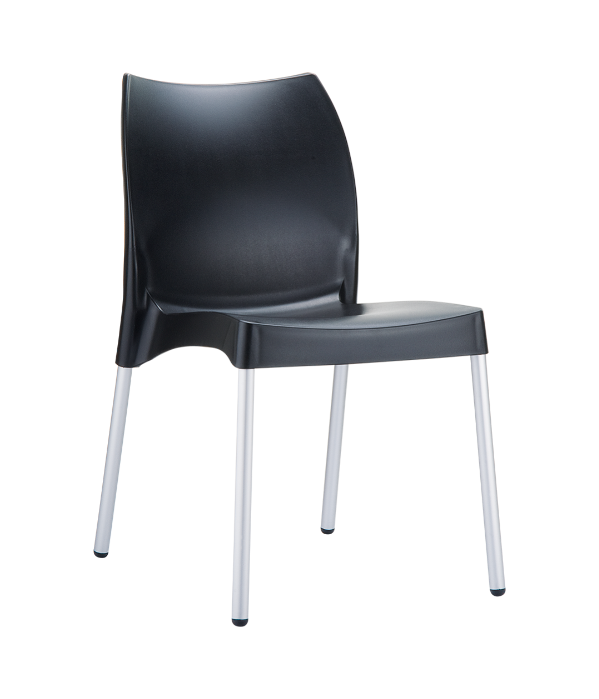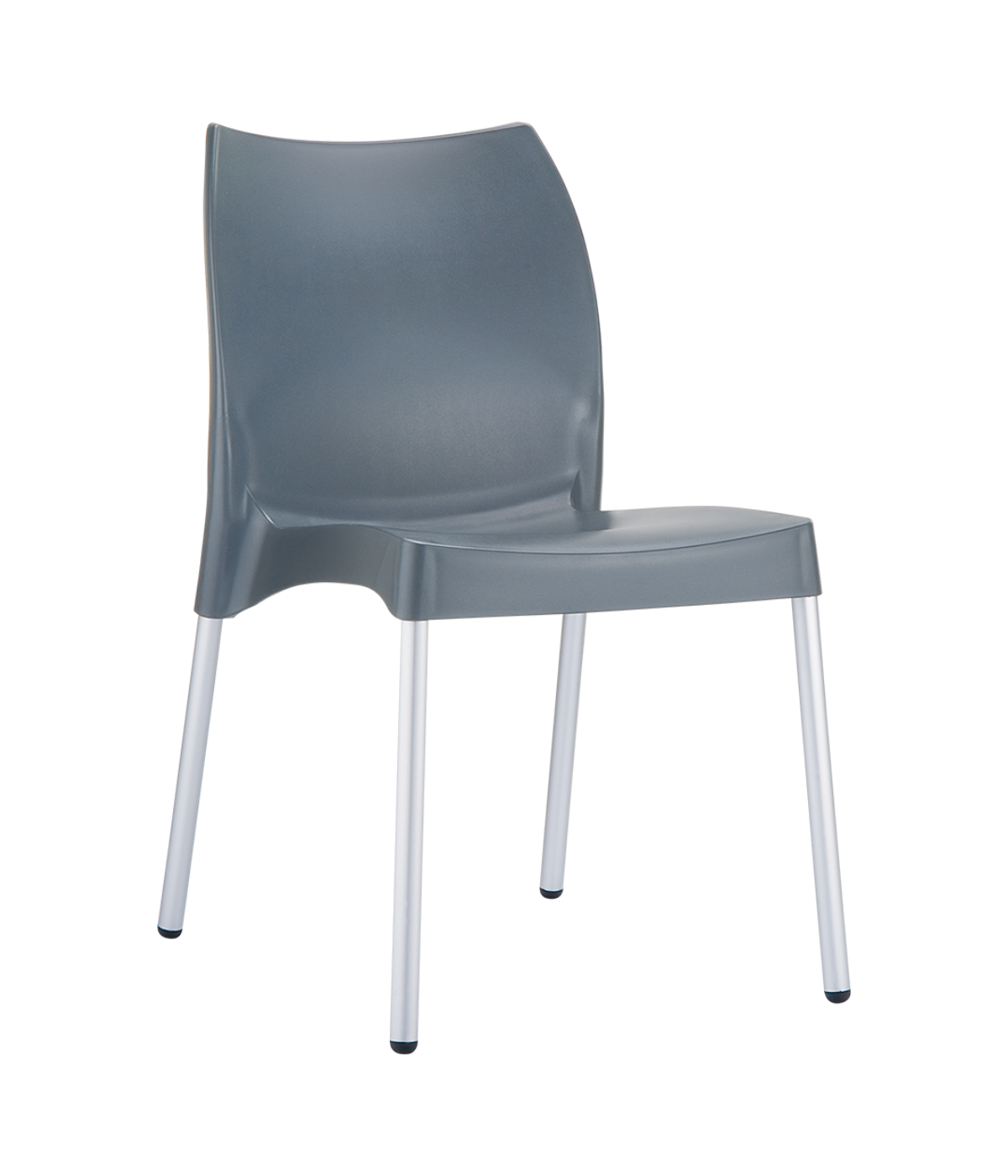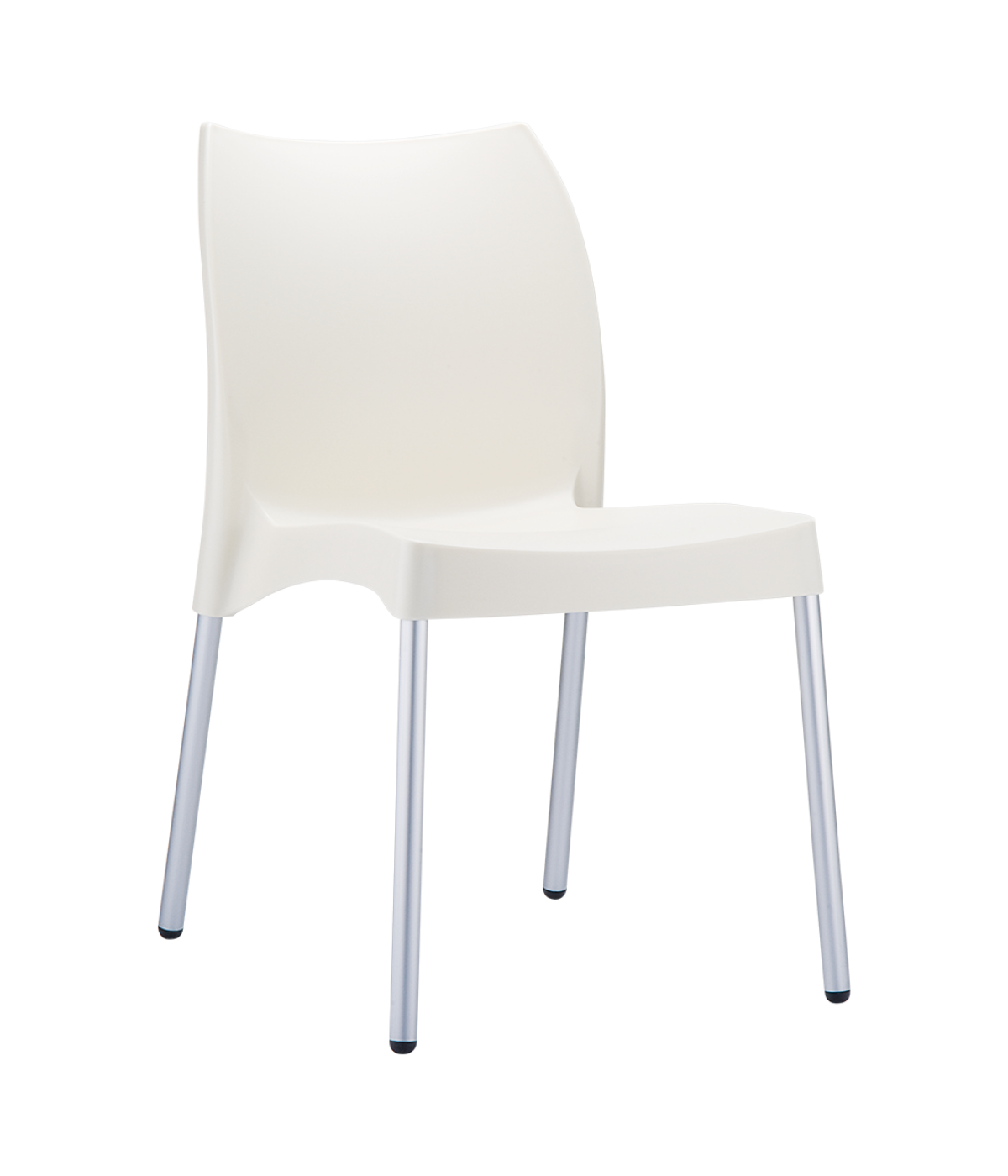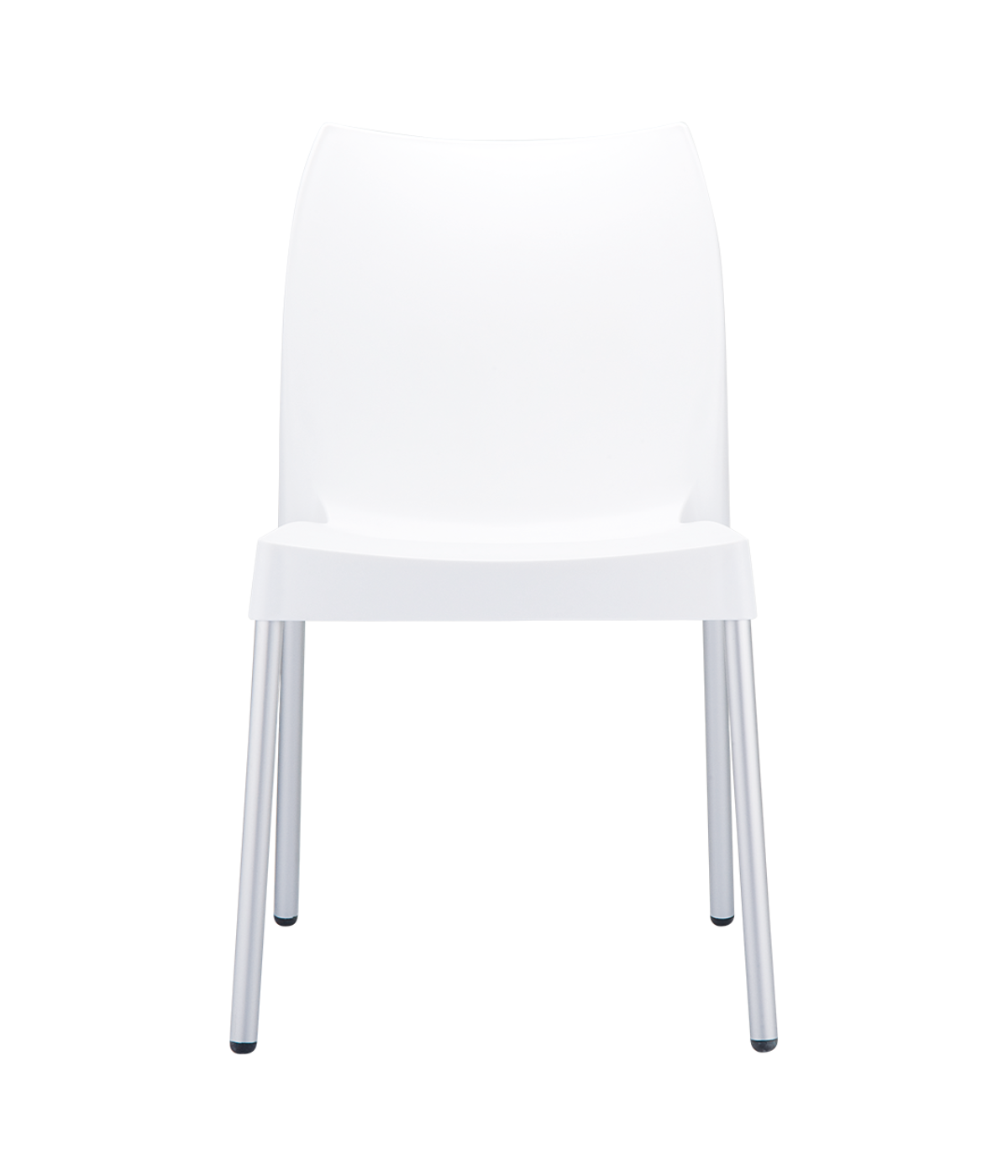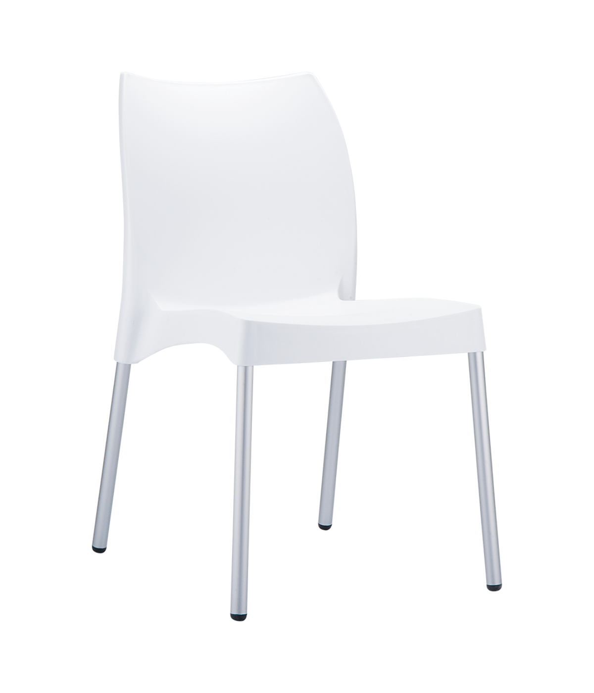 Stacking chair with recyclable polypropylene seat and backrest and anodized aluminium legs. Diameter 25 mm. For indoor and outdoor use.